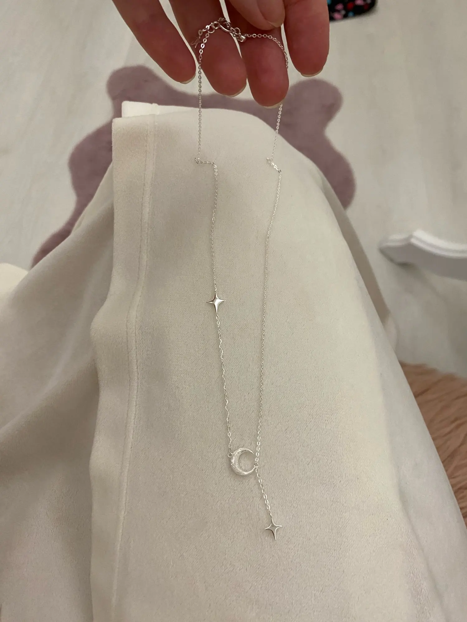 Женское колье-чокер со звездой и луной, из серебра 925 пробы