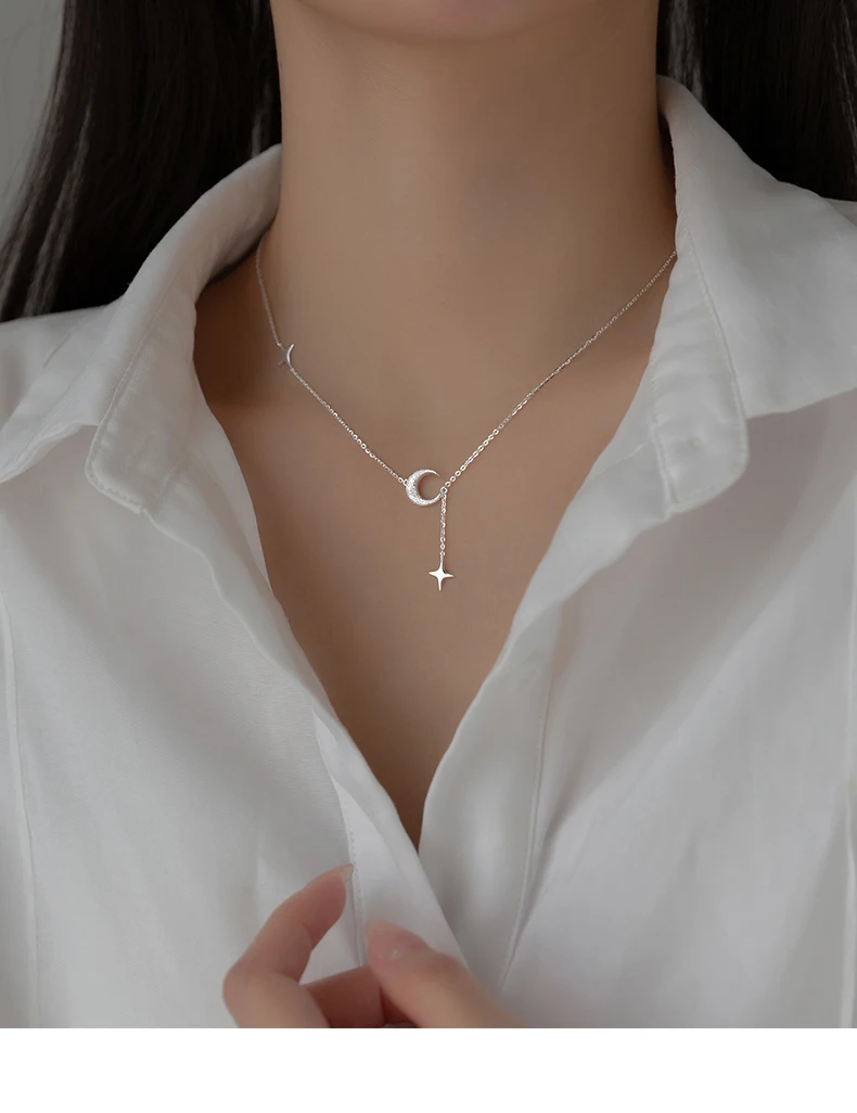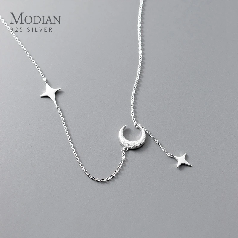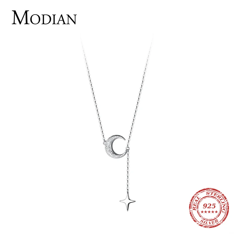 Цепочка MODIAN женская из серебра 925 пробы, изысканный кулон в виде Луны с эффектом потертости, простой чокер с платиновым покрытием и звездами, Подарочная бижутерия