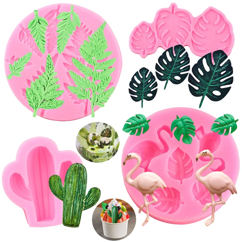 Тропический лист, кактус, фламинго, силиконовая форма, фрукты, конфеты, глина, смола, шоколад
