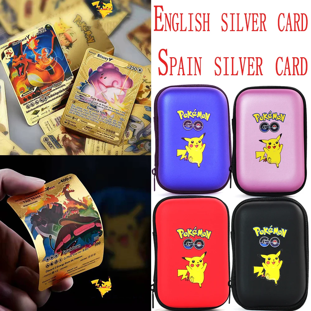 Покемон, металлическая золотая коробка для карт, золотые буквы, искусственные металлические карты, Charizard Vmax Gx коллекция, игра, карточка, чехол, игрушка
