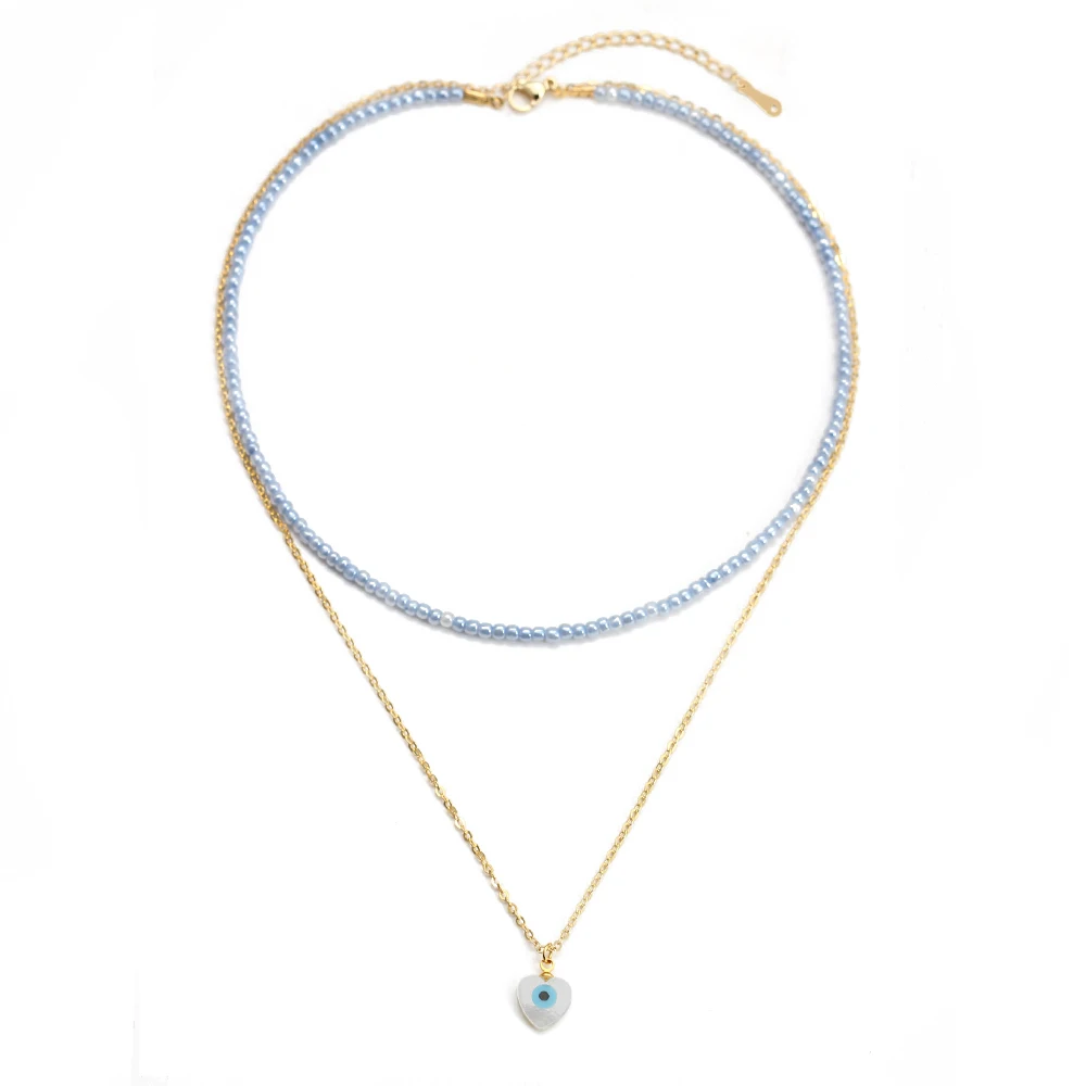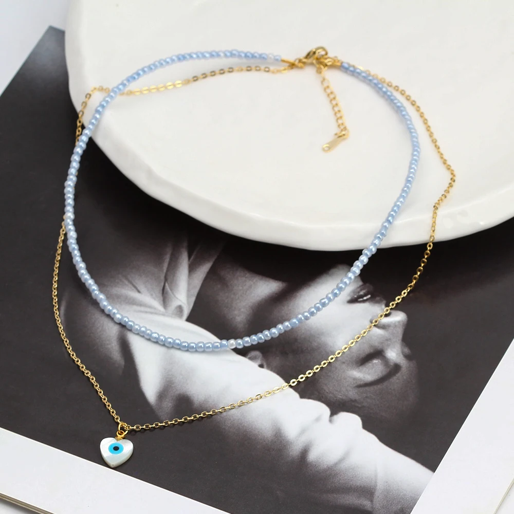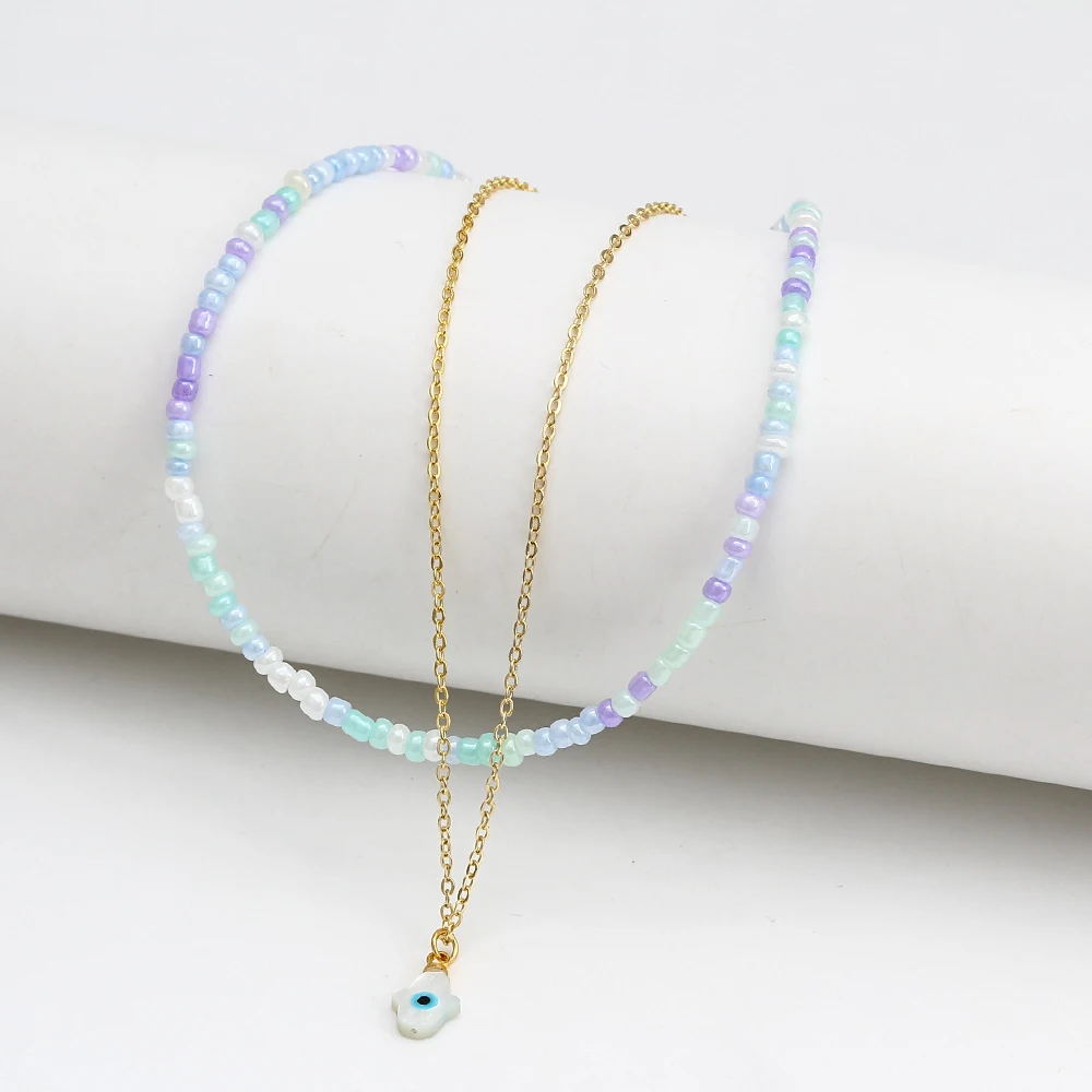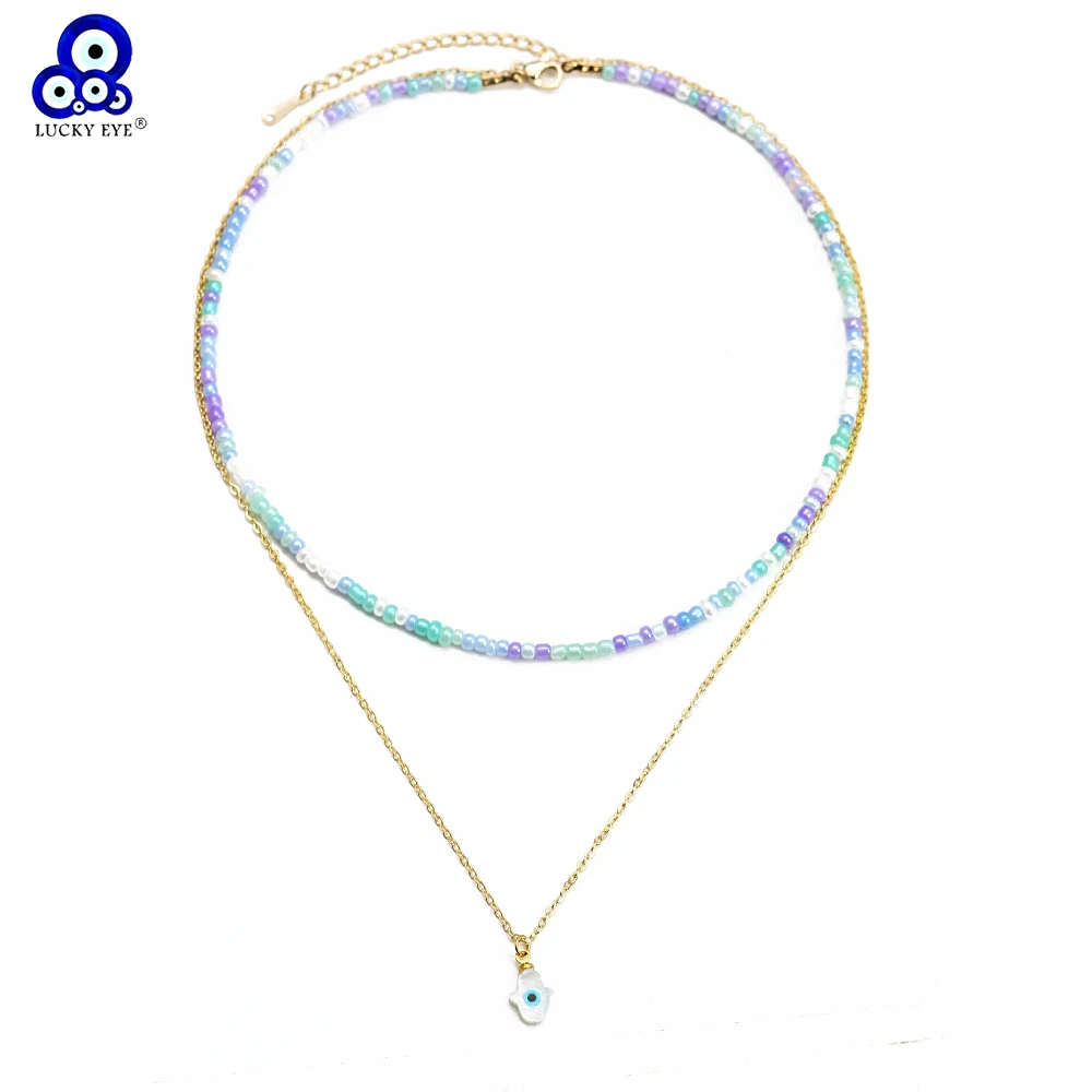 Двухслойное ожерелье Lucky Eye с красочными бусинами, длинная цепочка с подвеской в виде сердца, руки Фатимы, сглаза, ожерелье для женщин и девушек, мужчин, BE592