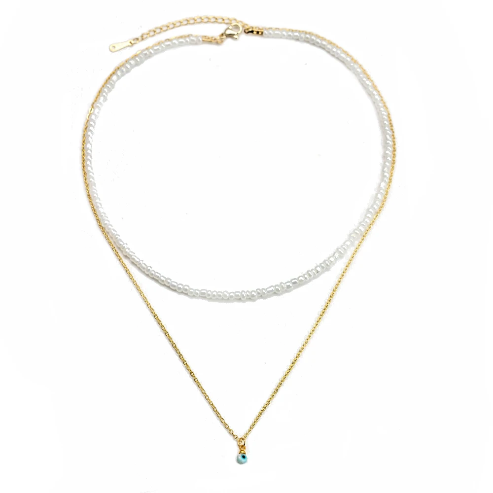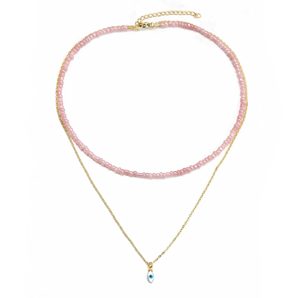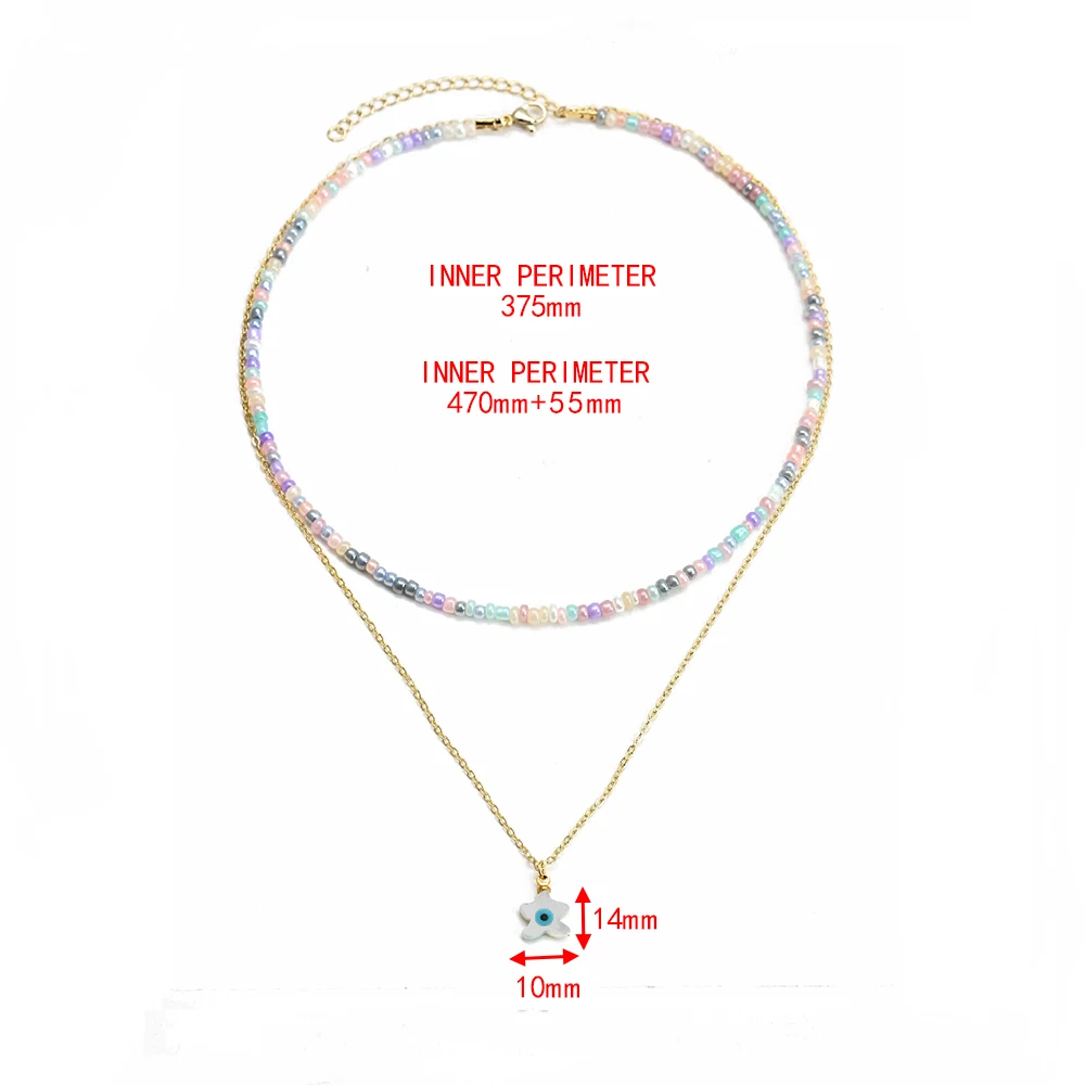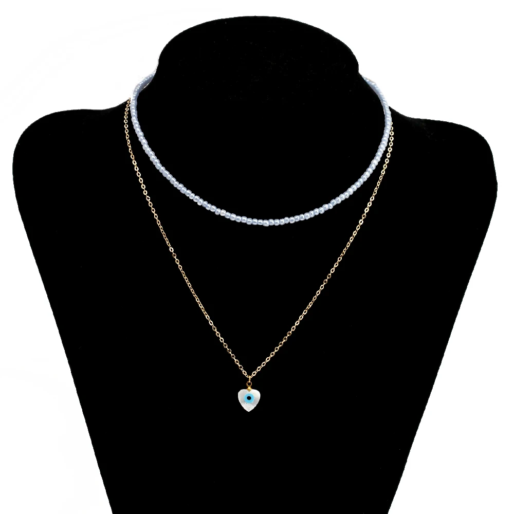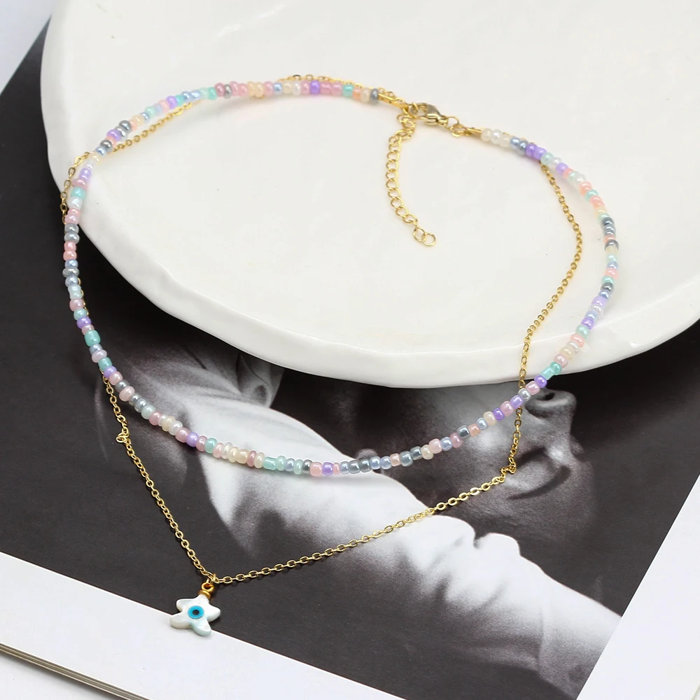 Двухслойное ожерелье Lucky Eye с красочными бусинами, длинная цепочка с подвеской в виде сердца, руки Фатимы, сглаза, ожерелье для женщин и девушек, мужчин, BE592