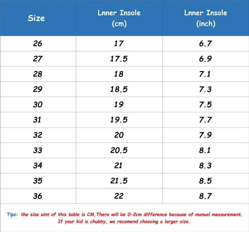 Обувь выглядит хорошо, и мой ребенок любит их. Тем не менее, размер слишком велик, хотя я измерил ступню своего ребенка и последовал инструкциям продавца.