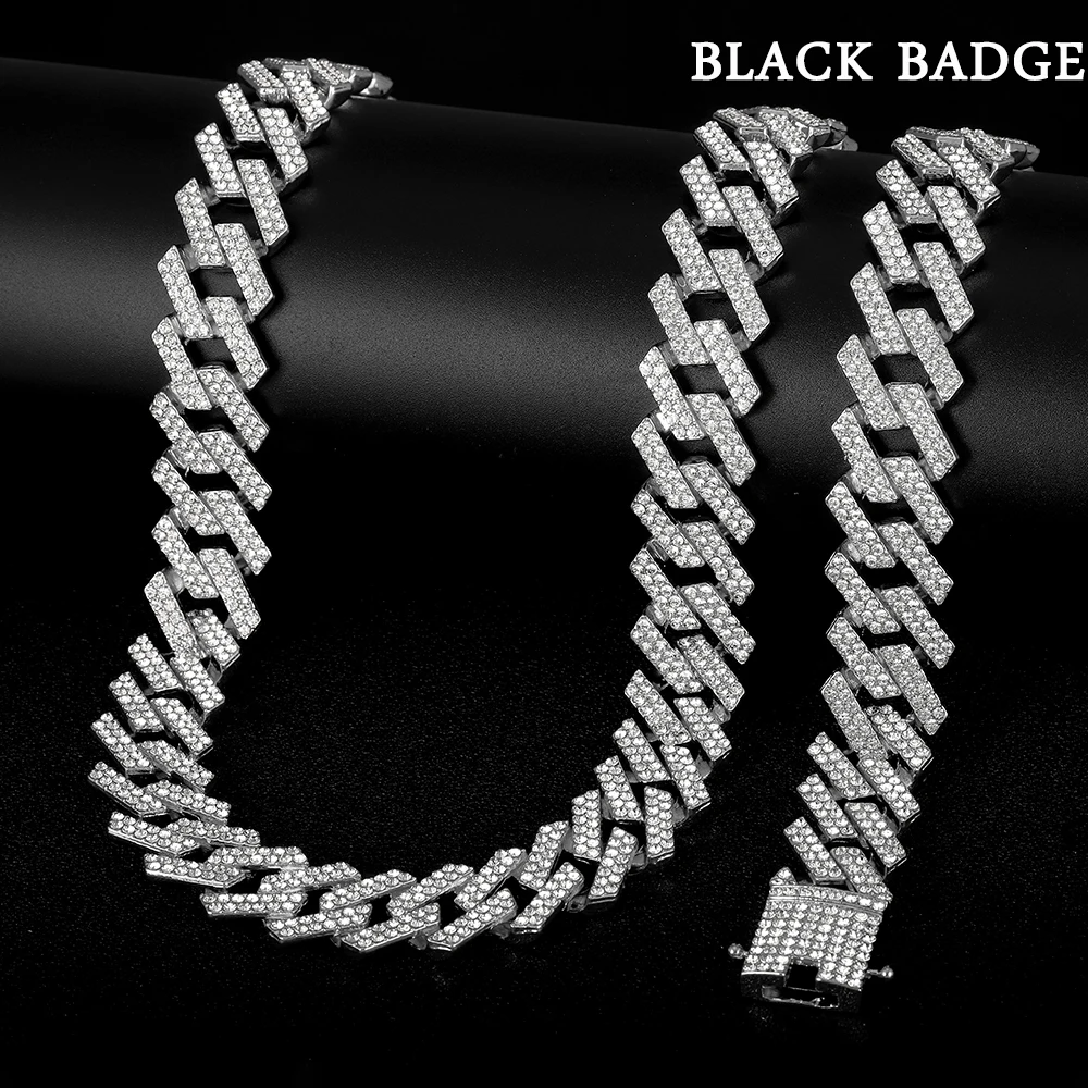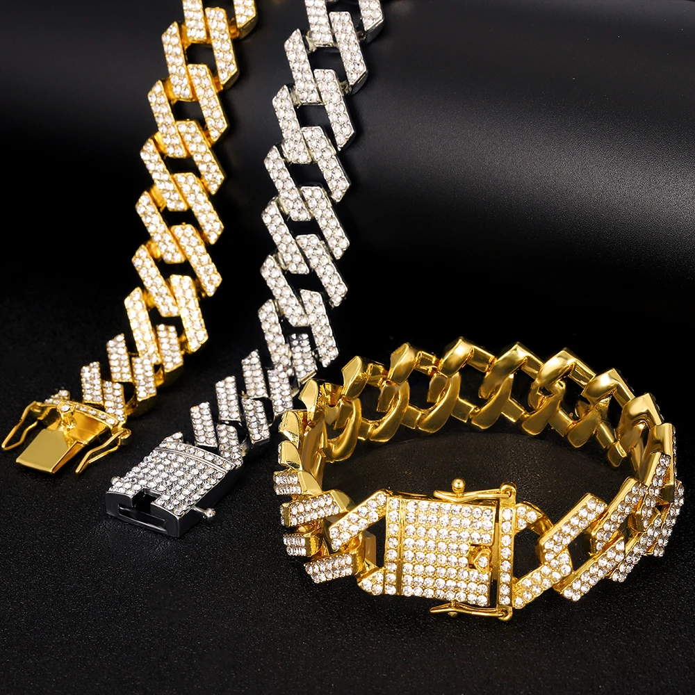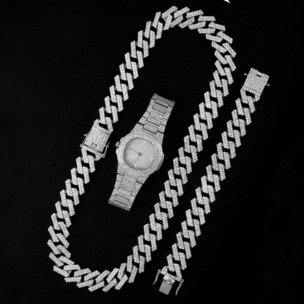 Набор из 3 браслетов и часов в стиле хип-хоп, ювелирные украшения из кубинской цепи со сверкающими звеньями AAA +, 20 мм