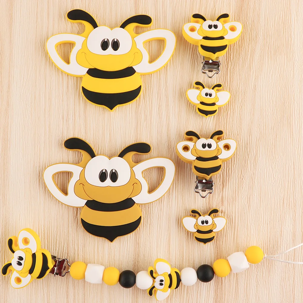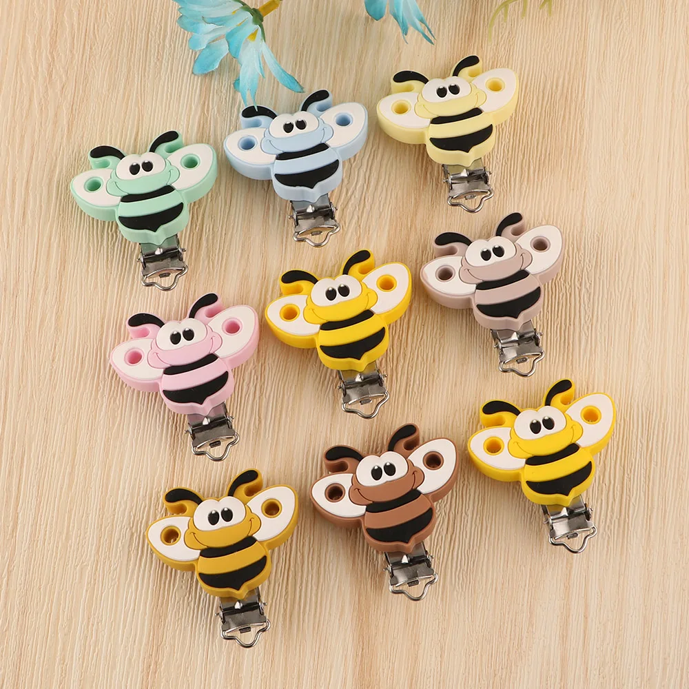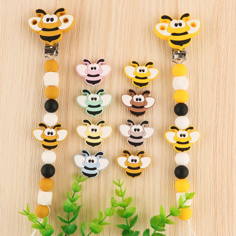 Силиконовая бусиназажимПрорезыватель для зубов Kovict, мультяшное животное, пчела, цепочка для соски, уход за зубами ребенка, жевательная игрушка, подвеска сделай сам, детские игрушки пищевого класса