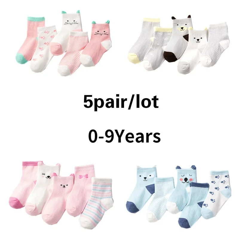 Носки детские хлопковые 5 партЛот, милые детские носки с медведем и котом для мальчиков и девочек, оптовая продажа, аксессуары для новорожденных