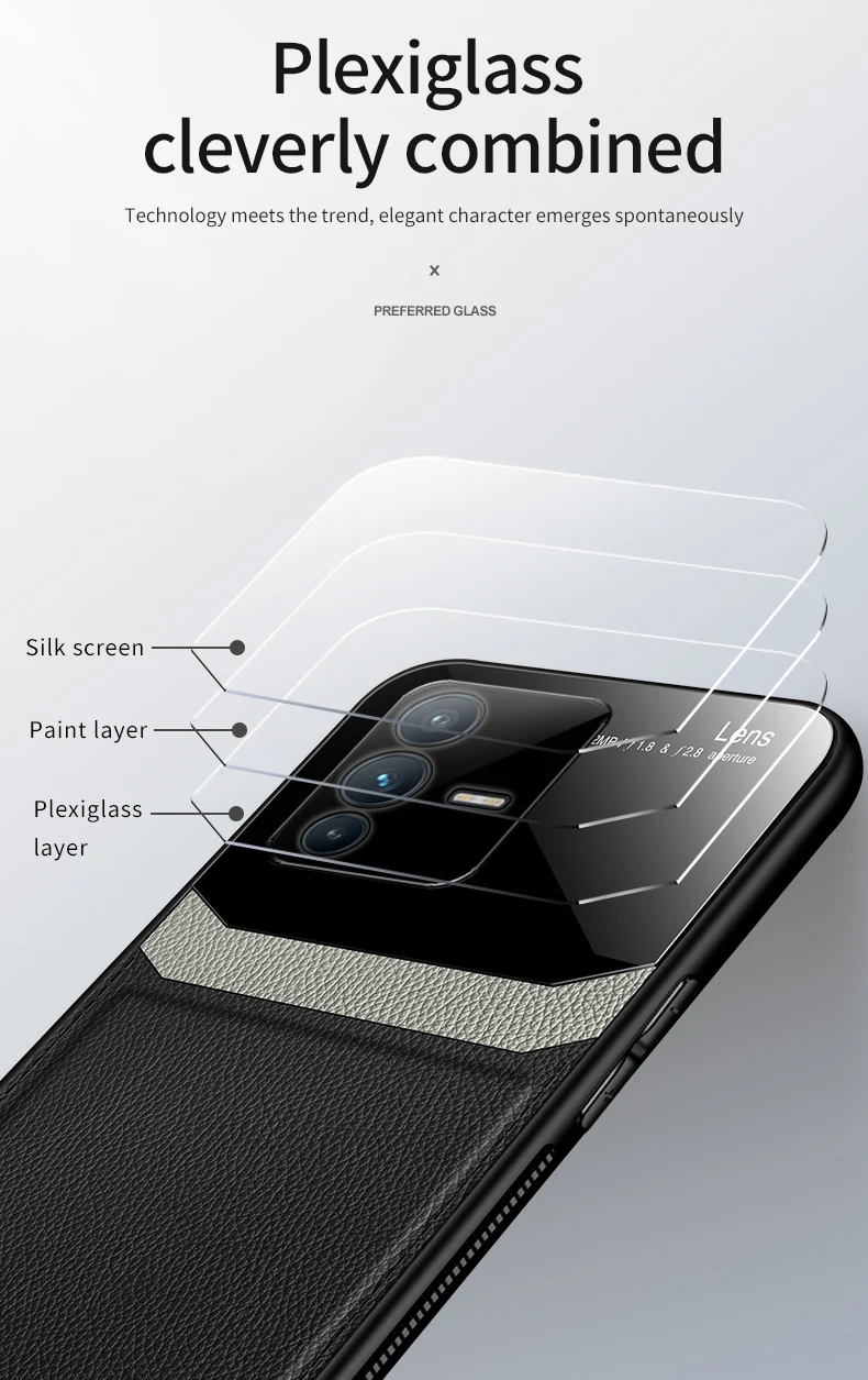 Чехол для VIVO X70 V2133A, противоударный кожаный чехол со стеклянн...
