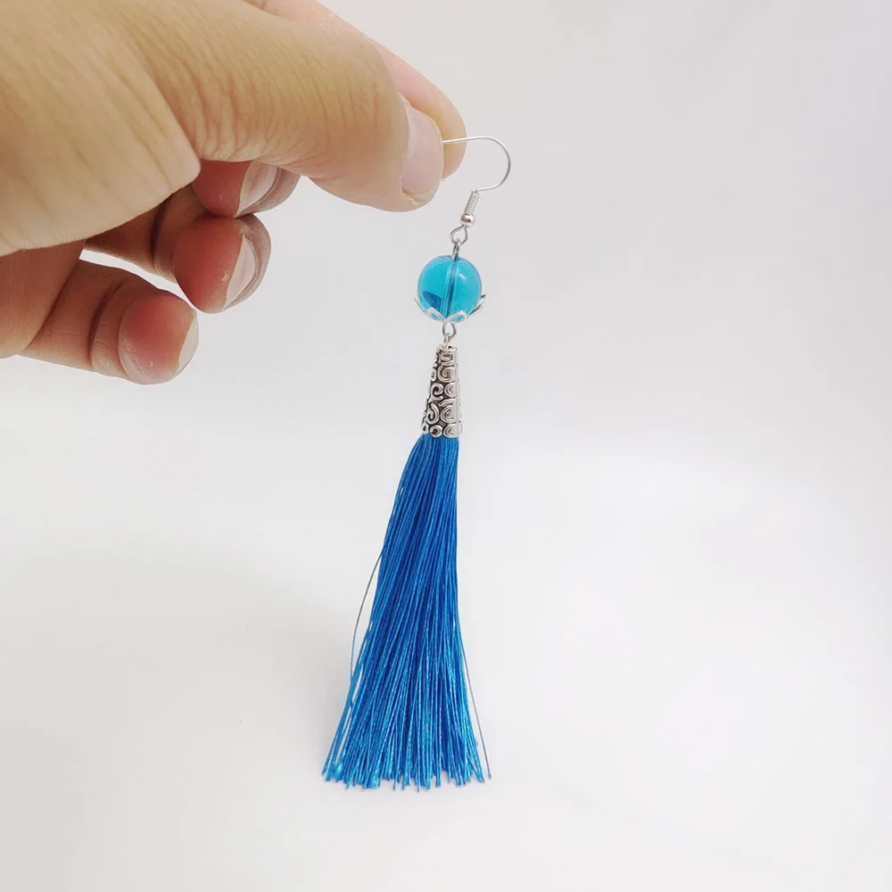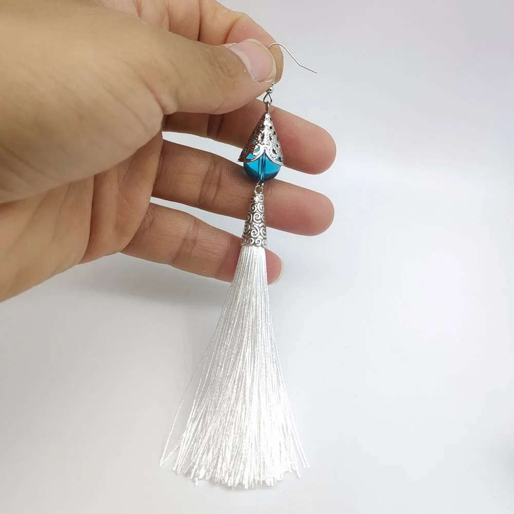 Новинка 2021 аниме Genshin ударные серьги Zhongli длинные серьги-кисточки клетчатые серьги для женщин и мужчин 1:1 бижутерия для косплея