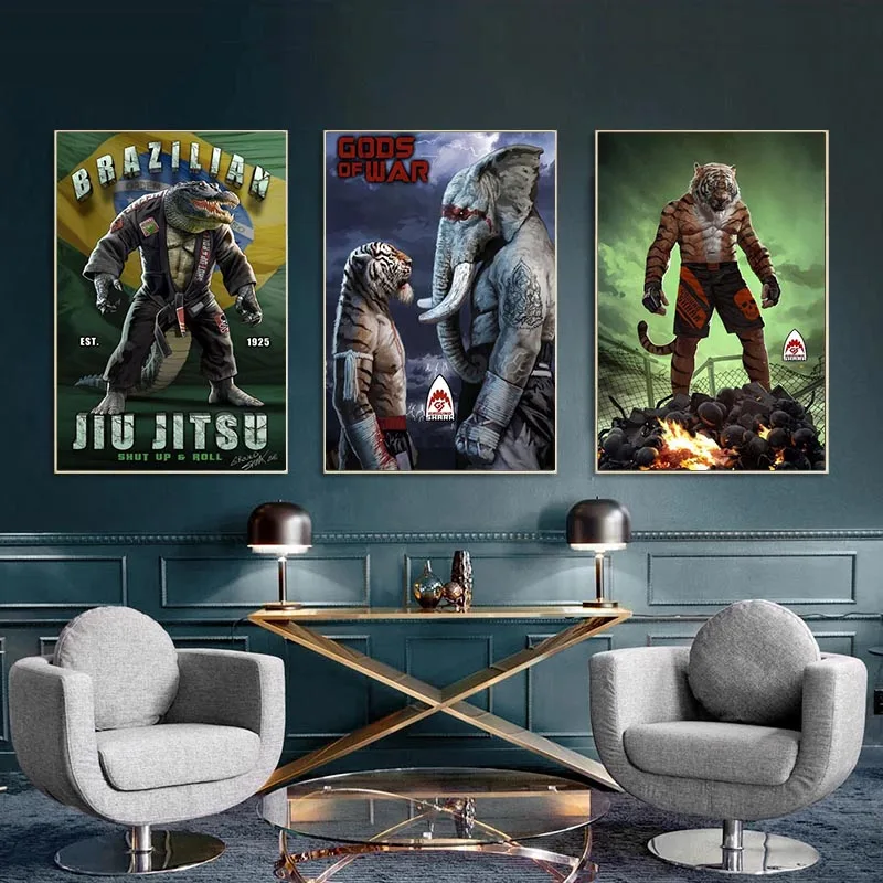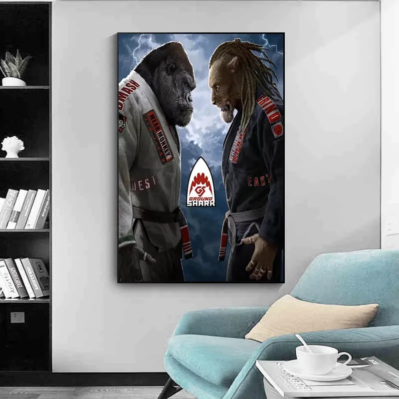 Абстрактный японский плакат Jiu Jitsu с животными, настенное искусство, картина и печать, Современная гостиная, домашний декор, картина без рамки