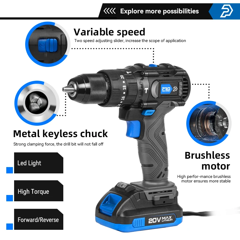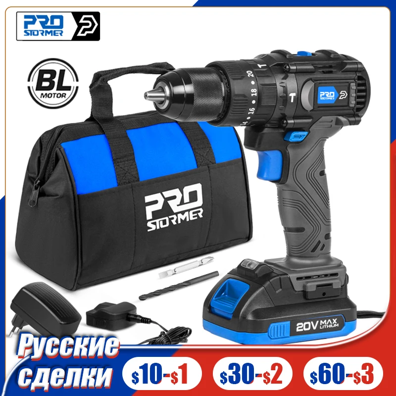 Дрель PROSTORMER беспроводная, 20 в, бесщеточный перфоратор, 60 нм