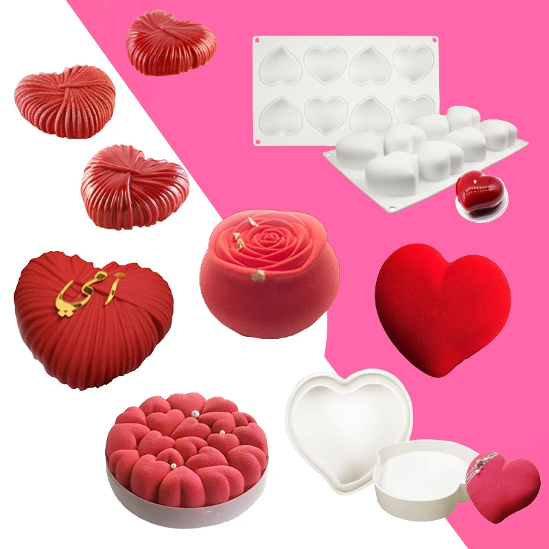 Силиконовые формы для выпечки SHENHONG в форме сердца, формы для выпечки, кондитерские изделия для кухни, французского десерта, розового цвета, на День святого Валентина