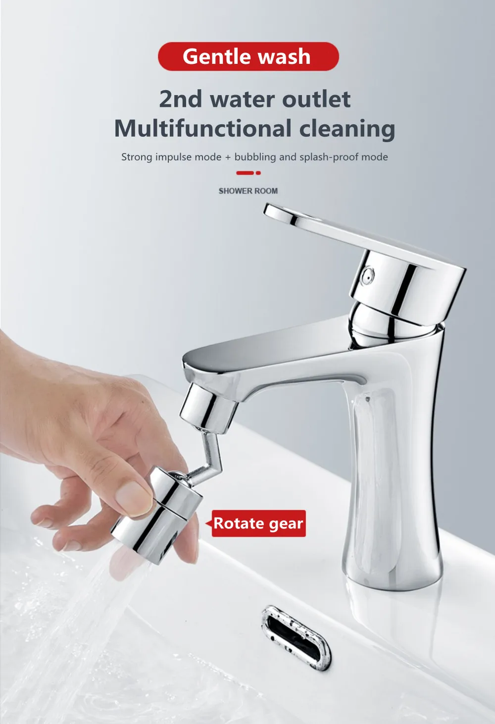 Простота установки: без каких-либо инструментов, просто убедитесь, что ваш кран соответствует размеру продукта и может быть использован, затем поместите насадку для душа в кран и затяните кронштейн по часовой стрелке, чтобы завершить установку