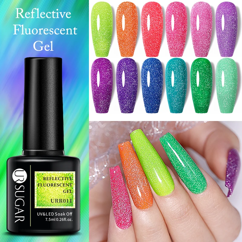 Светоотражающий Гель-лак для ногтей UR SUGAR, неоновый голографический гель, светящийся флуоресцентный Полупостоянный УФ-Гель-лак для дизайна ногтей