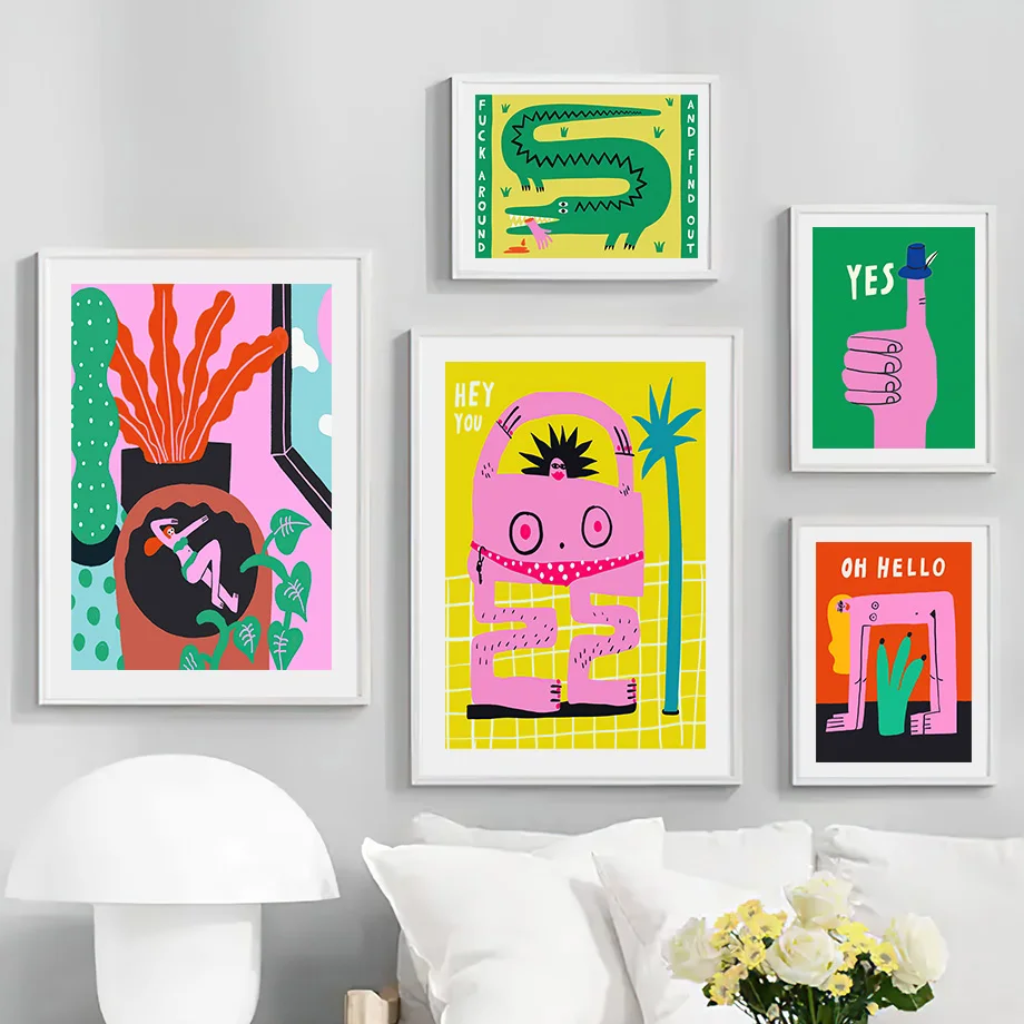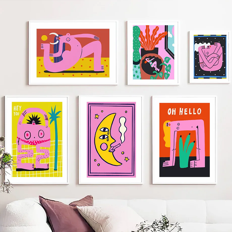 Плакат с изображением мультяшной кошки, рыбы, овчины, плакат, принт, тело, луна, леди, настенная Картина на холсте, картины в скандинавском стиле, декор для гостиной