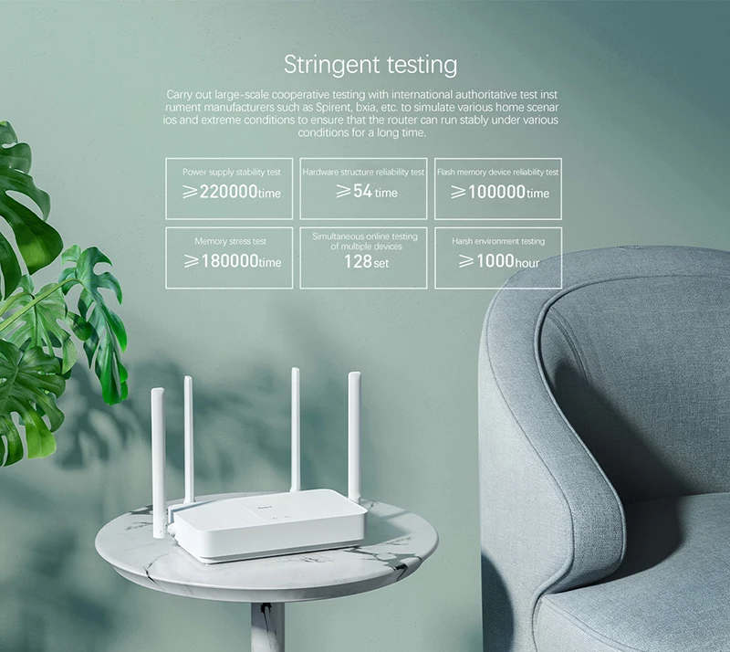 Проводите крупномасштабное кооперативное тестирование с международными авторитетными производителями измерительных приборов, такими как Spirent,bixa и т. Д. Имитировать различные домашние сценарные ios и экстремальные условия, чтобы гарантировать, что маршрутизатор может работать стабильно в различных условиях в течение длительного времени.