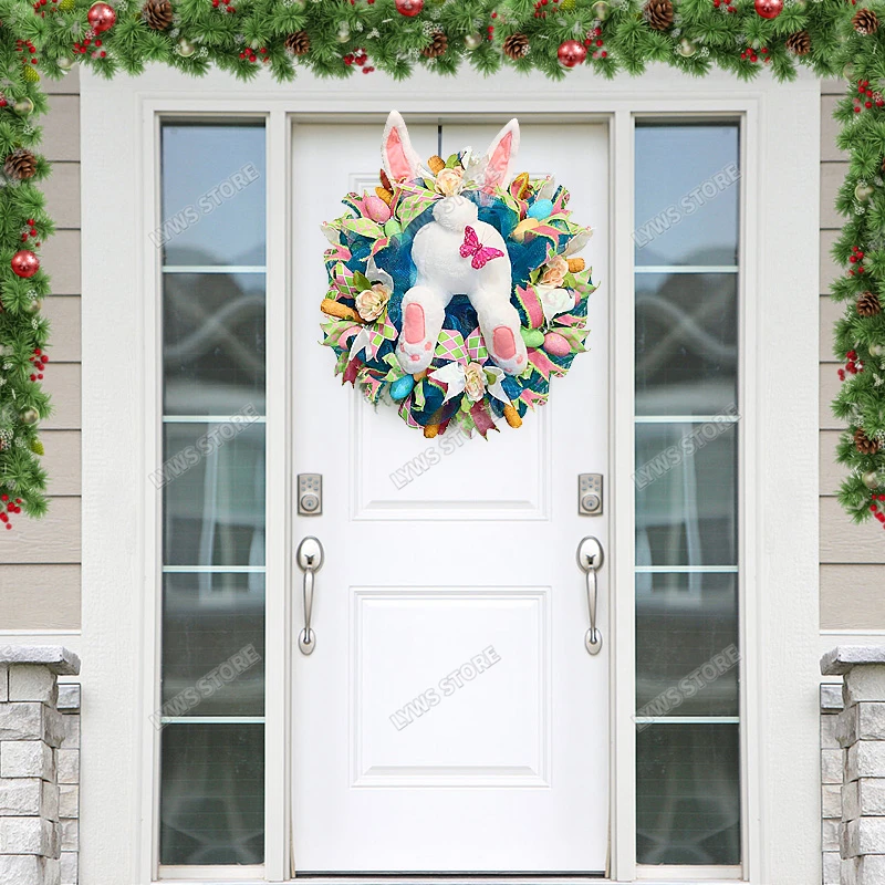 Пасхальное украшение 2022 для дома Пасхальный венок для входной двери Банни Стыковая гирлянда домашний декор для двери праздничный цветочный венок 40*50 см