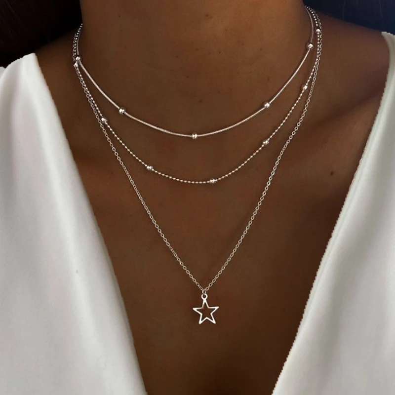 Чешское серебряное цветное многослойное ожерелье со звездой для женщин и девочек, модное золотое геометрическое ожерелье со звездой и Луной, ювелирные изделия, подарки