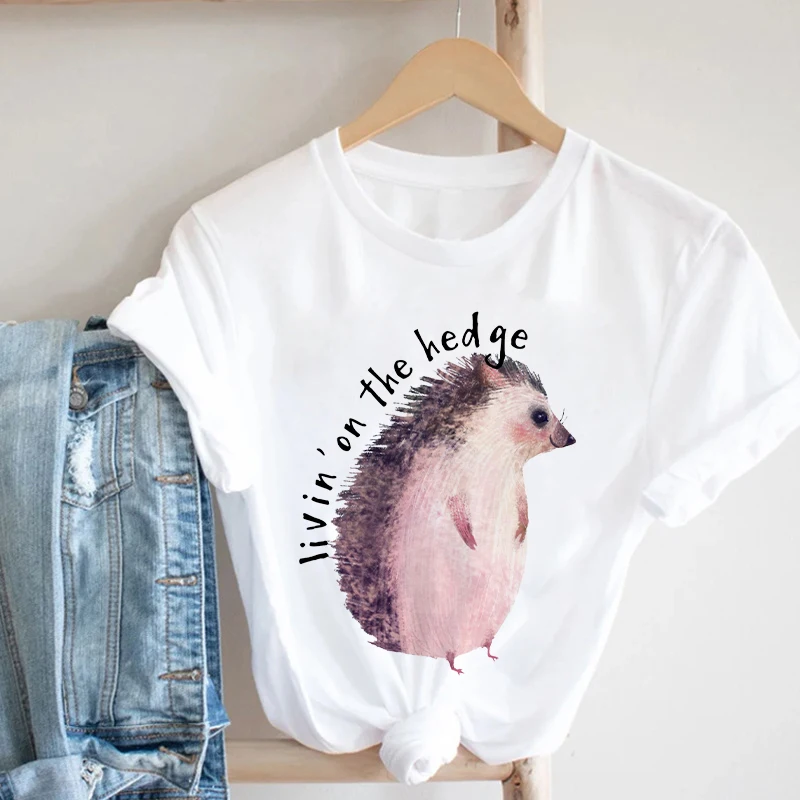 Женская футболка с круглым вырезом, коротким рукавом и принтом Ежик