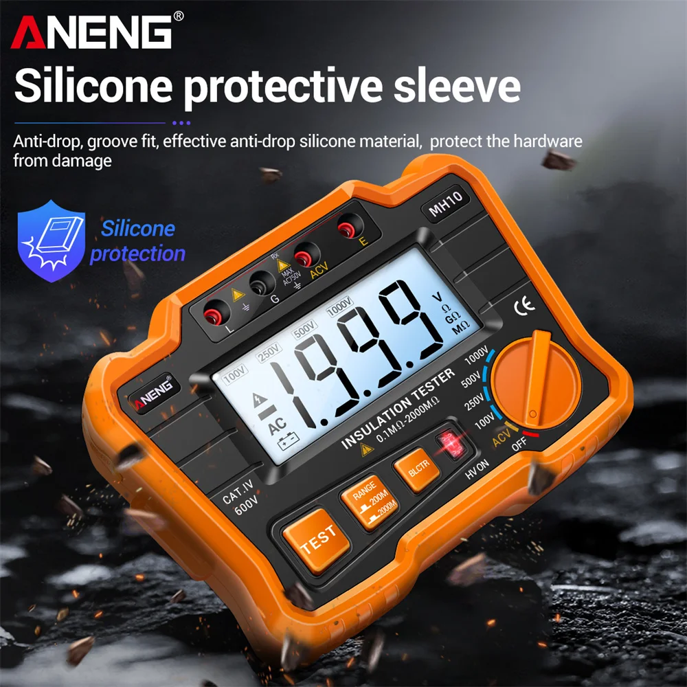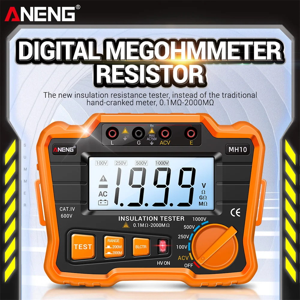 Цифровой Мегаомметр ANENG MH10, изоляционный Измеритель сопротивления заземления 100-1000 в ом, тестер напряжения