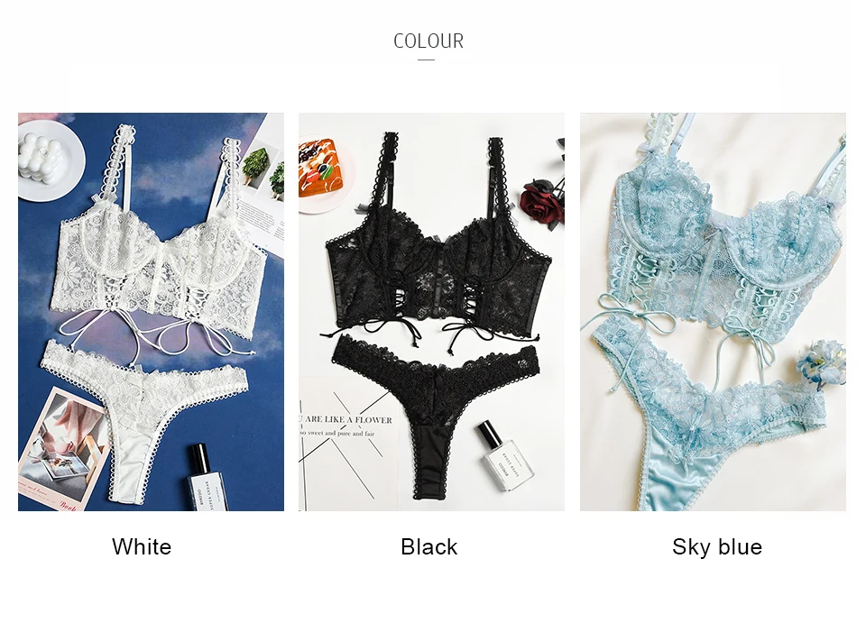 Комплект женского нижнего белья с вышивкой, Привлекательный бюстгал...