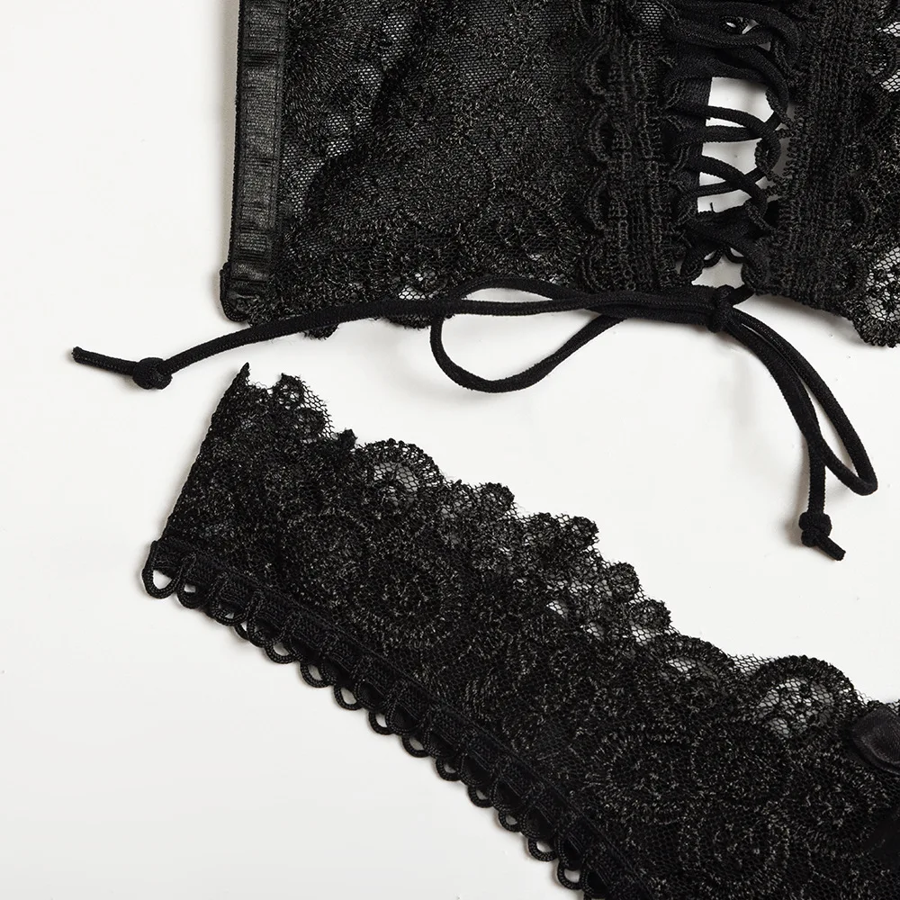 Комплект женского прозрачного кружевного нижнего белья с вышивкой и...
