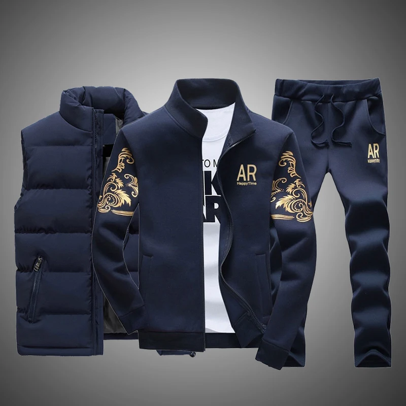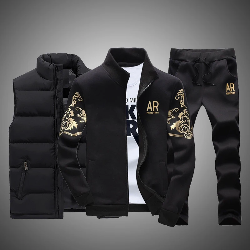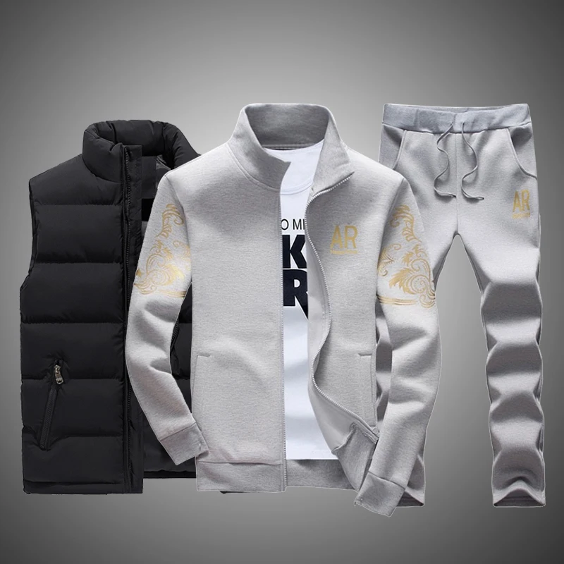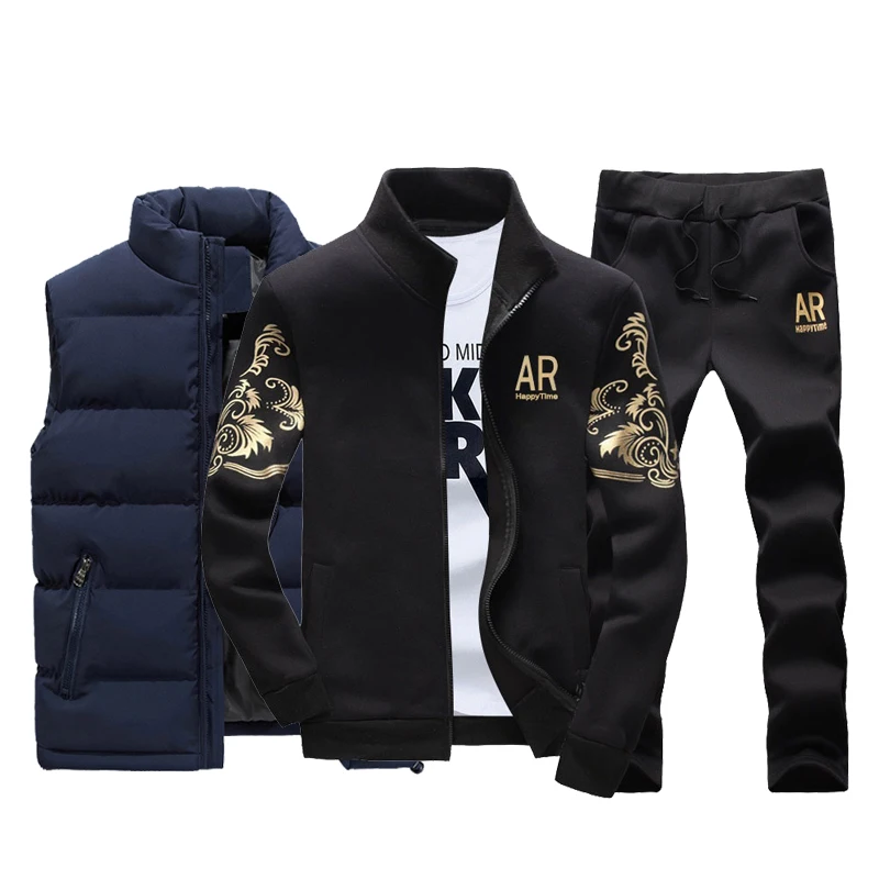 Наружная ДлинаSweat Suits New Winter Men's Clothing Men Sets 3 Pieces Vest Coat Set