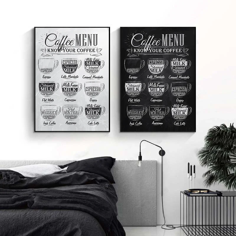 Винтажный стиль, меню кофе, холст, плакаты, украшение Кофейни, живопись ретро, фотография, холст, печать, Настенный декор
