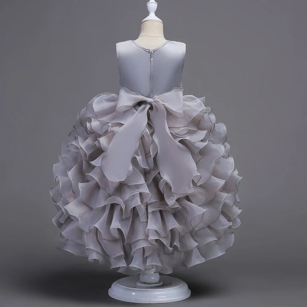 Фиолетовое высококачественное платье для девочки, детское платье с пушистым хвостом для свадьбы, подружки невесты, свадебное платье