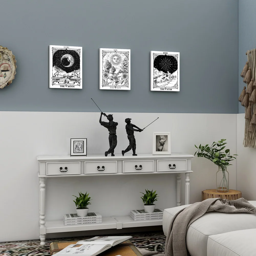 Настенная картина в стиле бохо с изображением карты Таро, черно-бел...