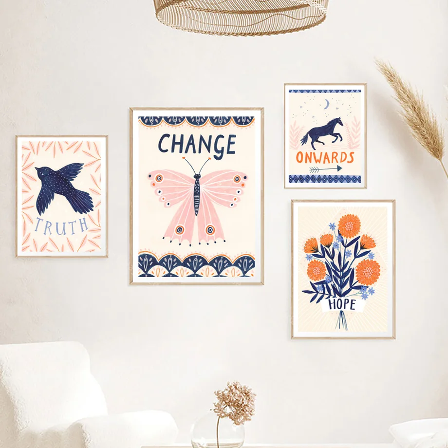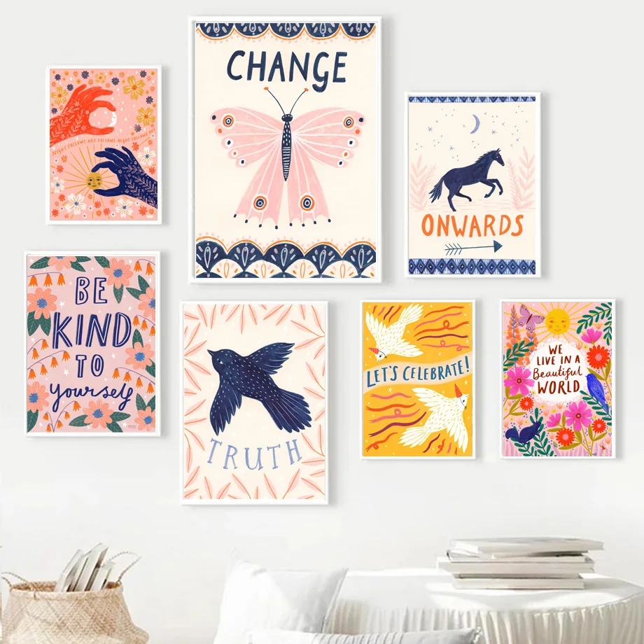 Бабочка лошадь птица солнце вдохновляющие цитаты настенная живопись на холсте скандинавские постеры и принты настенные картины декор для гостиной