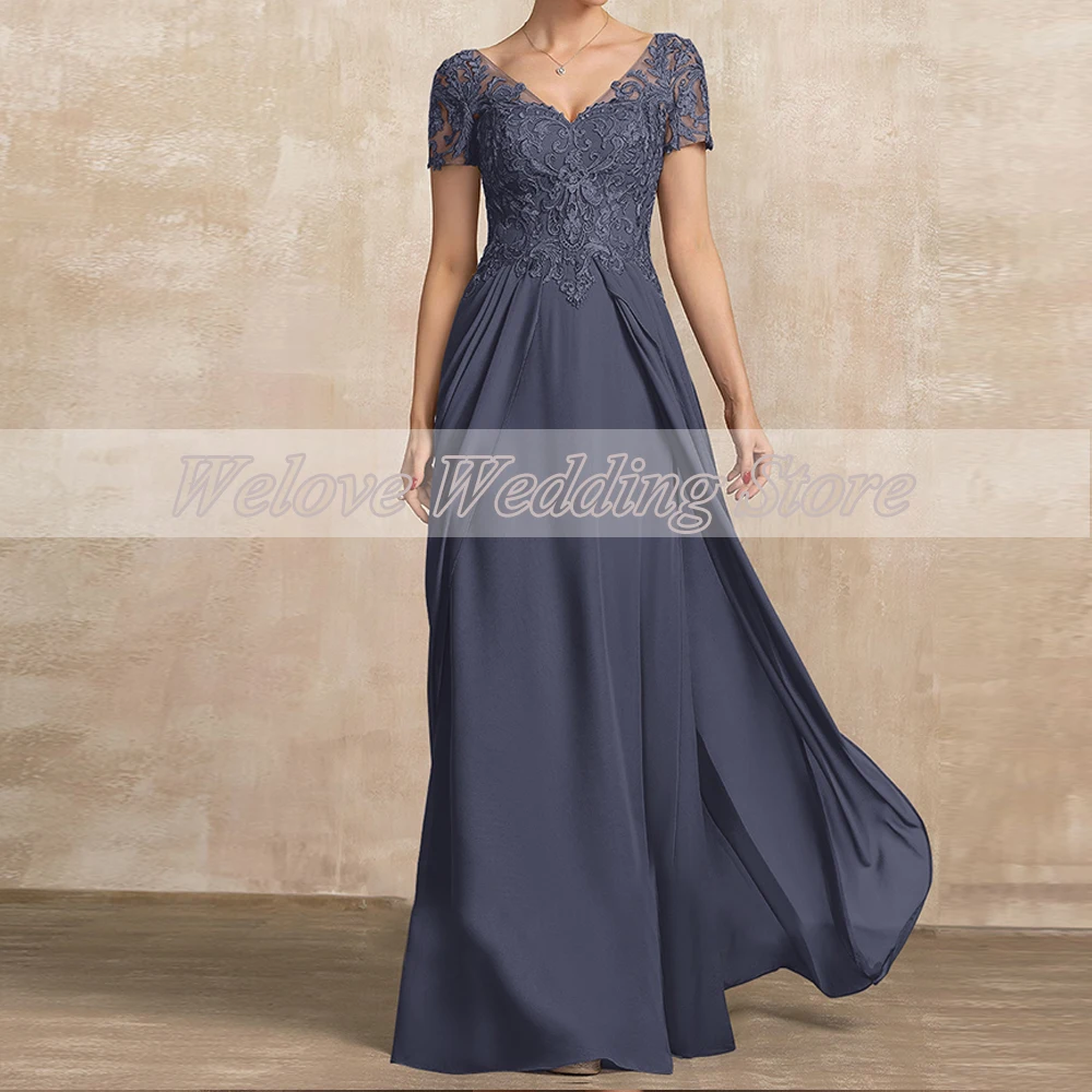 Элегантное шифоновое платье в пол для матери жениха для свадьбы с короткими рукавами и аппликацией