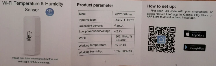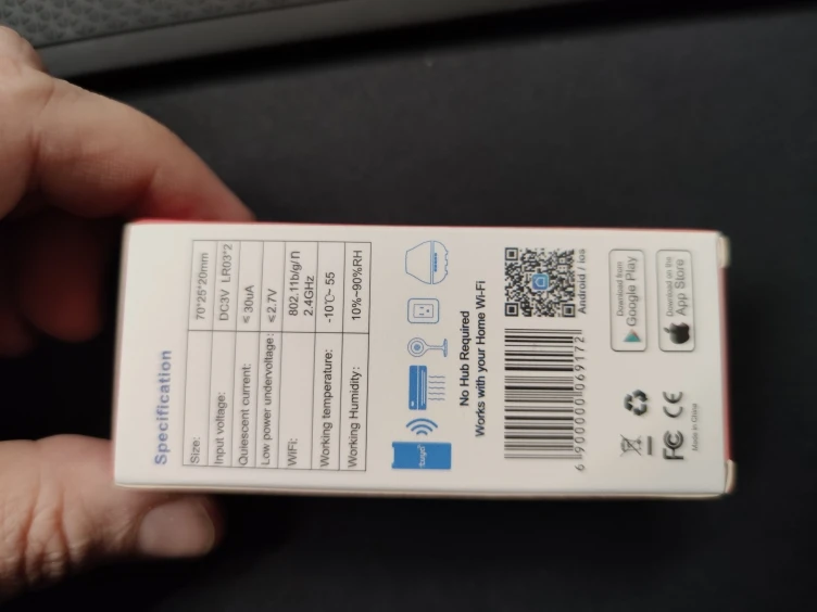 Коробка была немного раздавлена на стойке регистрации, но без повреждений датчика. Он поставляется с инструкцией по применению, двусторонней наклейкой, но без крепежных винтов. Хорошо работает с Smart Life и Google Home. В Google Home информация доступна только голосом. Интерфейс, в приложении Smart Life, довольно полный, с другой стороны, цвет и размер чисел температуры, влажности и часов (маленький и светло-серый цвет) они не очень читаемые. Некоторые настройки в приложении немного приблизительны в их результате. Работает с 2 классическими батареями LR03. Обратите внимание на расположение этого датчика по сравнению с вашим номером Wi-Fi, потому что диапазон довольно ограничен, иначе вам понадобится ретранслятор Wi-Fi. Он был пьян за 16 дней.