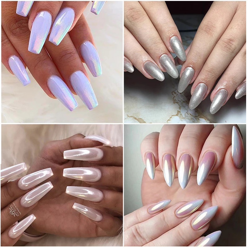 Жемчужный Блестящий Порошок для ногтей, зеркальный хромовый пигмент Aurora, белый, фиолетовый цвет, рандомный маникюрный Гель-лак, пыль, украшение для дизайна ногтей