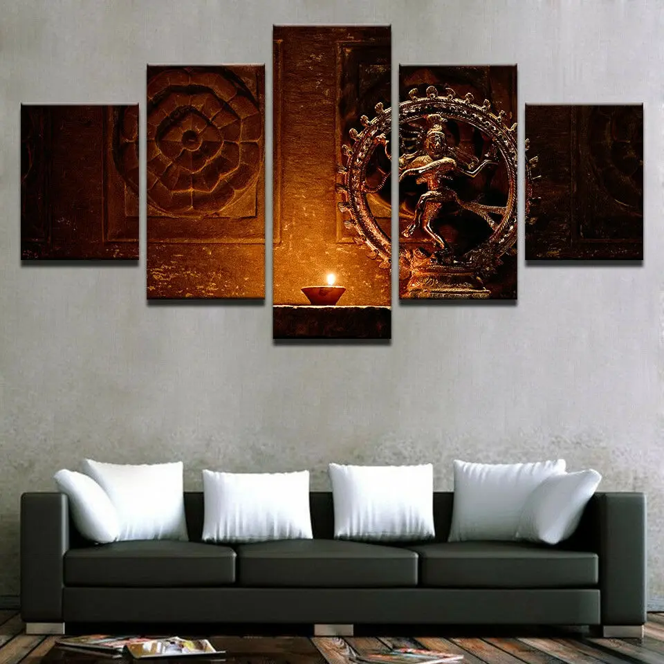 Индуийский Бог, танцующая скульптура натараджа, 5 панелей, холст, печать, настенное искусство, Декор для дома, искусство, без рамки, 5 шт., декор для комнаты