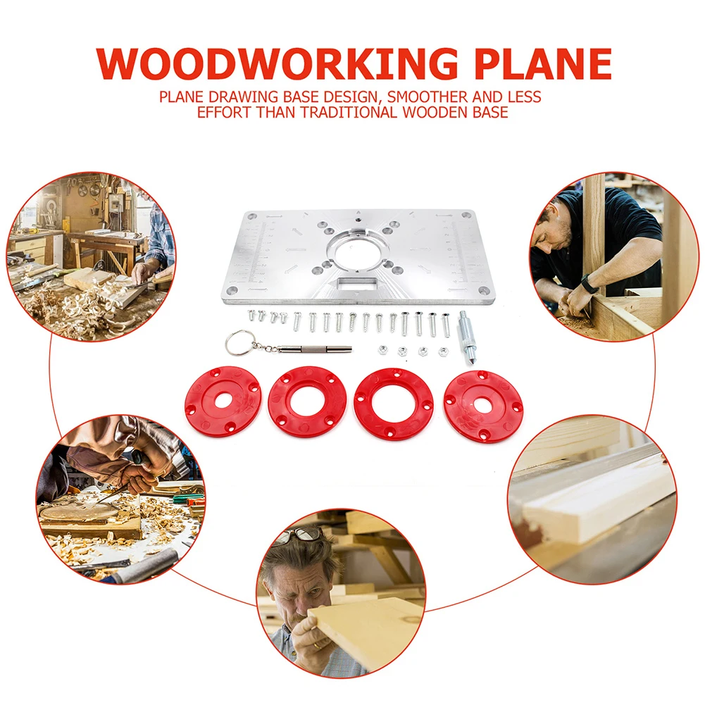 Фрезерный стол, вставная пластина, алюминиевый обрезной станок, гравировальная флип-панель с 4 кольцами для деревообработки