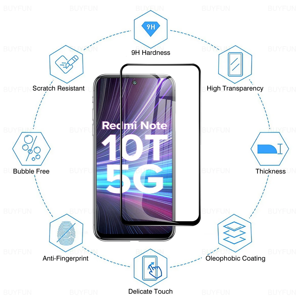 Защитное стекло с полным покрытием для Xiaomi Redmi Note 10 T 5G 10 10S 10Pro 10 Pro Max Note10 T, защита экрана 6,5 дюйма M2103K19I, 2 шт.