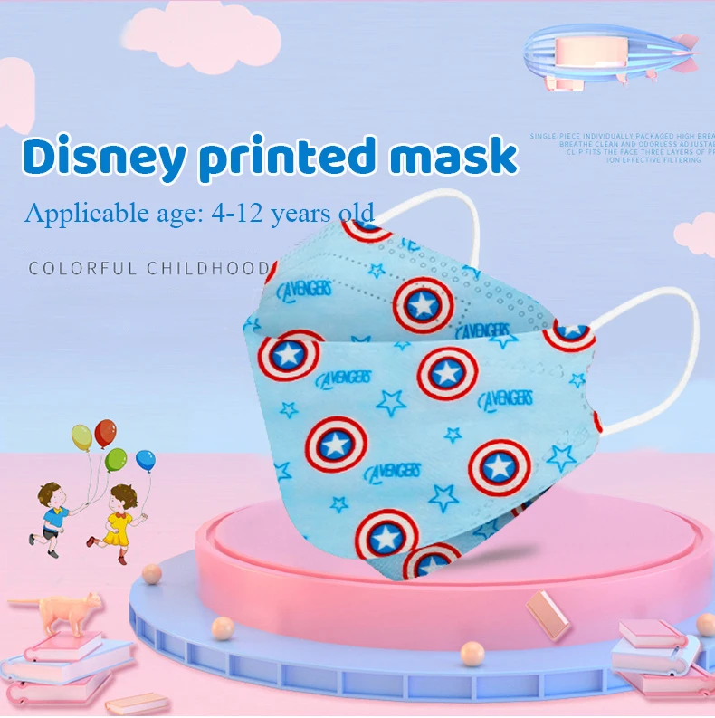 Детская мультяшная маска для лица Disney KN95, 4-слойная Пылезащитная многоразовая маска для мальчиков и девочек, многоцветная маска FFP2 с принтом