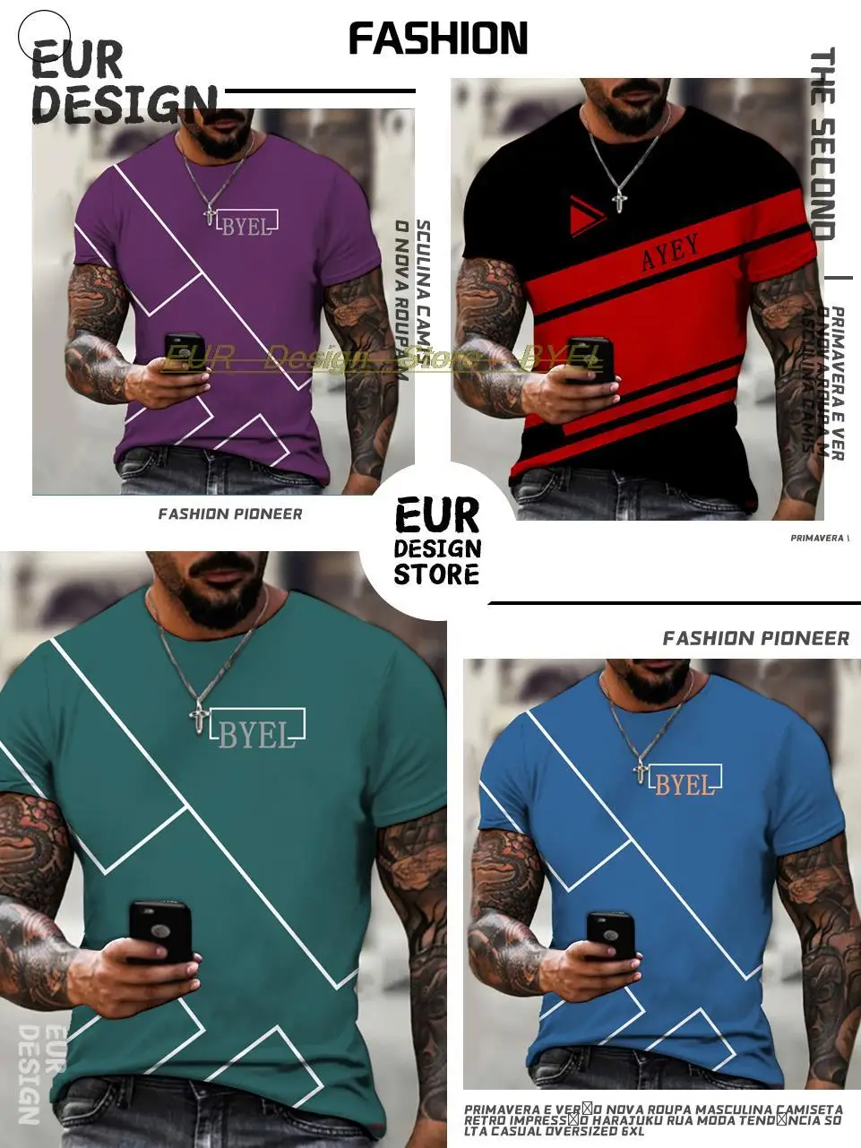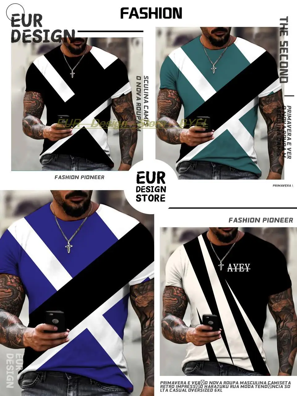 Футболка мужская оверсайз с круглым вырезом, модный топ с художественным 3D-принтом, повседневный простой стиль, свободного покроя, черный и белый цвета, 6XL
