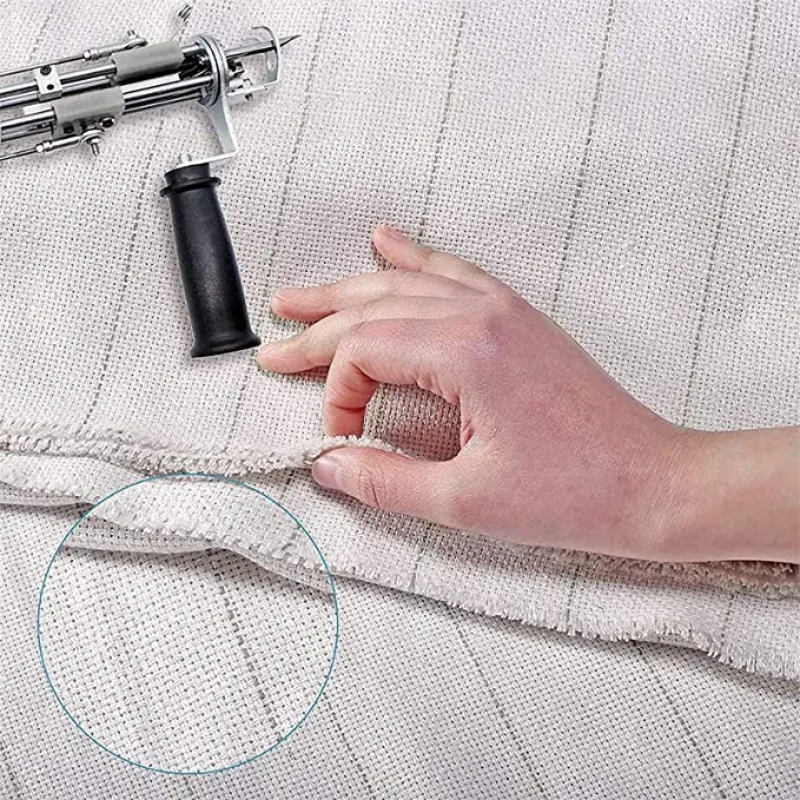 2 》Основной тканевый тюфтинг является основной фабричной тканью для ружья. Он имеет маркированные линии, вплетенные в ткань, чтобы помочь с маркировкой и тафтингом. И ткань из смеси хлопка/полиэстера, полностью ориентируясь на желтые линии каждые 5 см.