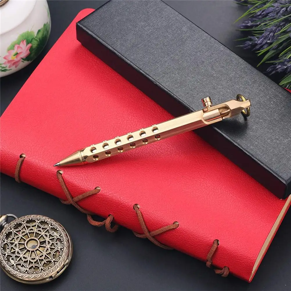 Твердая латунная ручка с болтом, Антискользящая Шестигранная ручка с отверстиями, ручка для подписи для карманного повседневного использования, детские подарки
