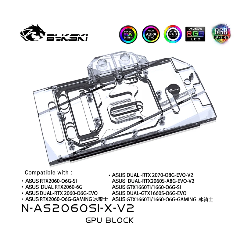 Блок графического процессора Bykski для ASUS RTX2060 GTX1660 O6G GAMING, кулер с водяным охлаждением и полным покрытием