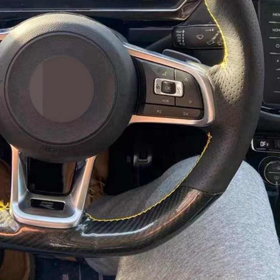 DIY ручной работы из углеродного волокна Черная замша чехол рулевог...