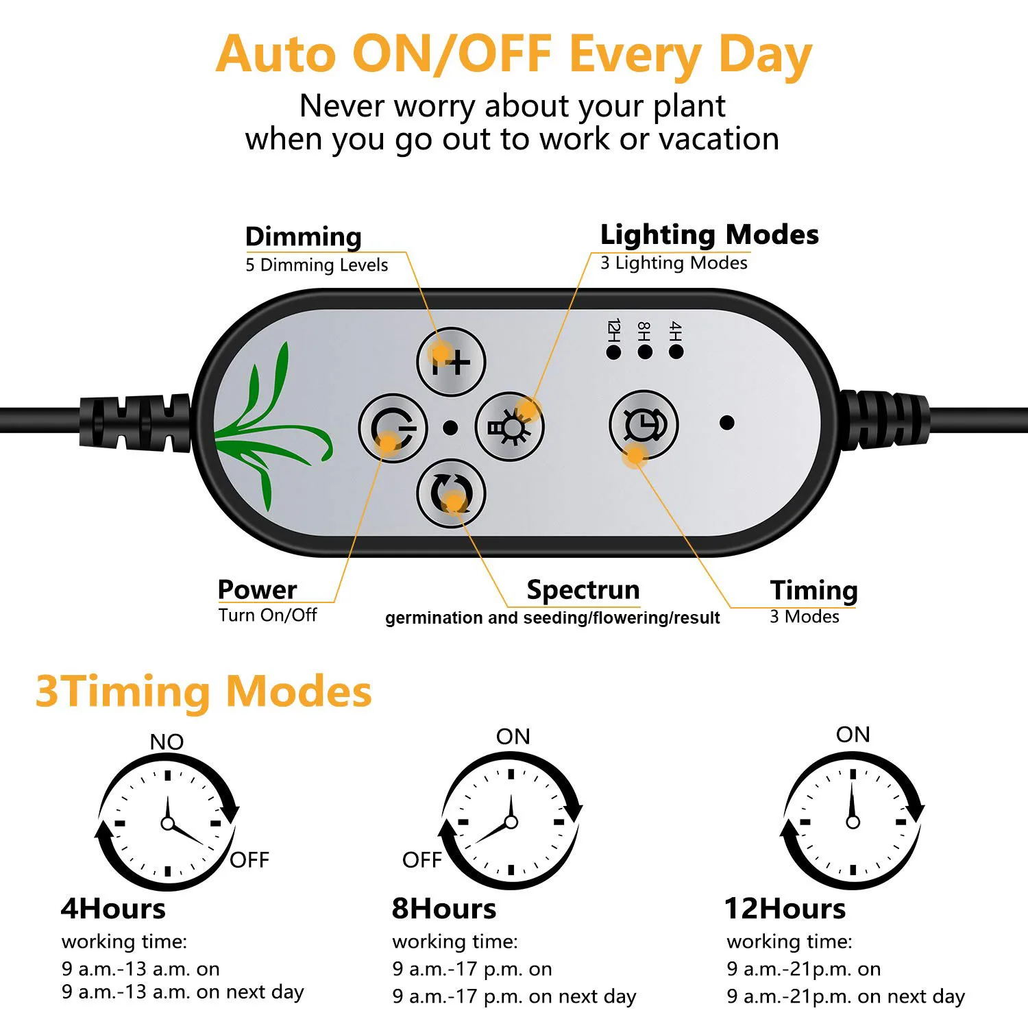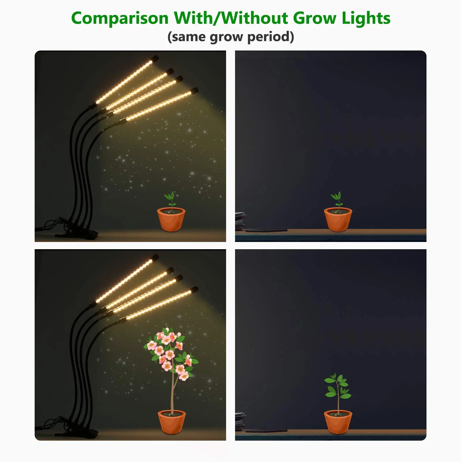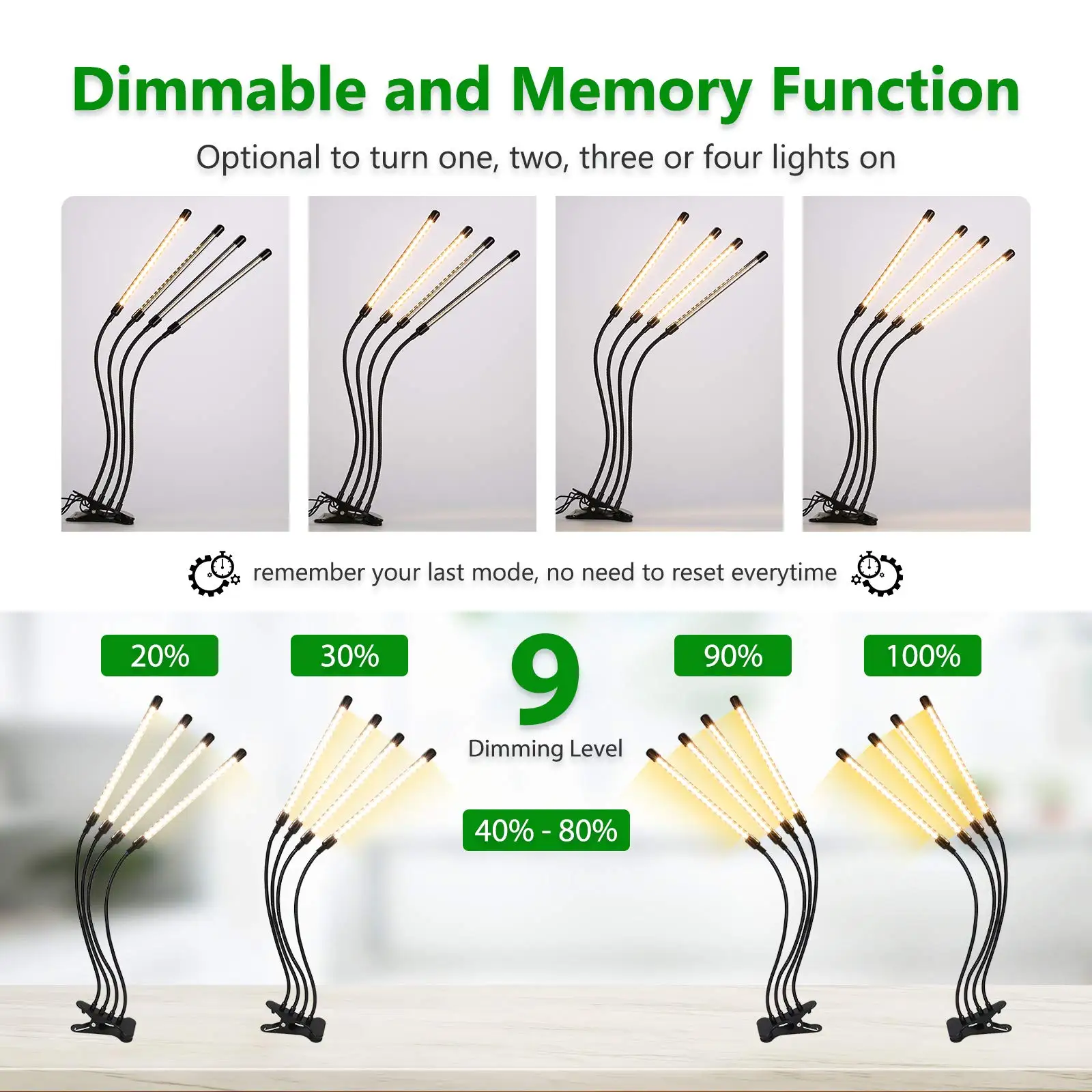 Яркость регулируется, белые световые головки могут свободно перемещаться в соответствии с фактическим спросом.Особенности:18 шт. белых светодиодов дневного света в каждой головке, низкое тепло и низкое энергопотребление.5 уровней затемнения для удовлетворения различных потребностей яркости вашего завода.Вы можете настроить время с 4/8/12 часов в зависимости от роста этапов.Интеллект и удобство, применимы практически ко всем растениям.Для цветения и фруктов, способствует росту стебля и листьев.Светильник с головками и длинной гибкой трубкой, легко отрегулировать светильник в любом направлении.Зажимная лампа может быть надежно закреплена на изделиях, очень удобна в использовании.Подходит для комнатных садов, горшечных растений, ферм, садов, теплиц.Характеристики:Материал: Поликарбонат и алюминийВход: DC5VМощность: 36 ВтГоловка: 4 головкиСветильник источник света: 18 шт. Дневной светильник белого цветаДиапазон освещения: 180 °, 20 сантиметровГибкий: 360 °Яркость: 5 уровнейТаймер: 4/8/12HСтепень защиты: IP66Срок службы: 30000 чДлина кабеля: 1,4 м/4.59ftДлина шланга: 300 мм/11,8 дюймаРазмер лампы: 250*20 мм/9,84 * 0.79inВес изделия: 607 г/1,34 фунтаПосылка Вес: 818g / 1.8lbРазмер посылка: 330*125*85 мм/12,99*4,92*3,35 дюймовУпаковочный лист:1 * растительный светильник