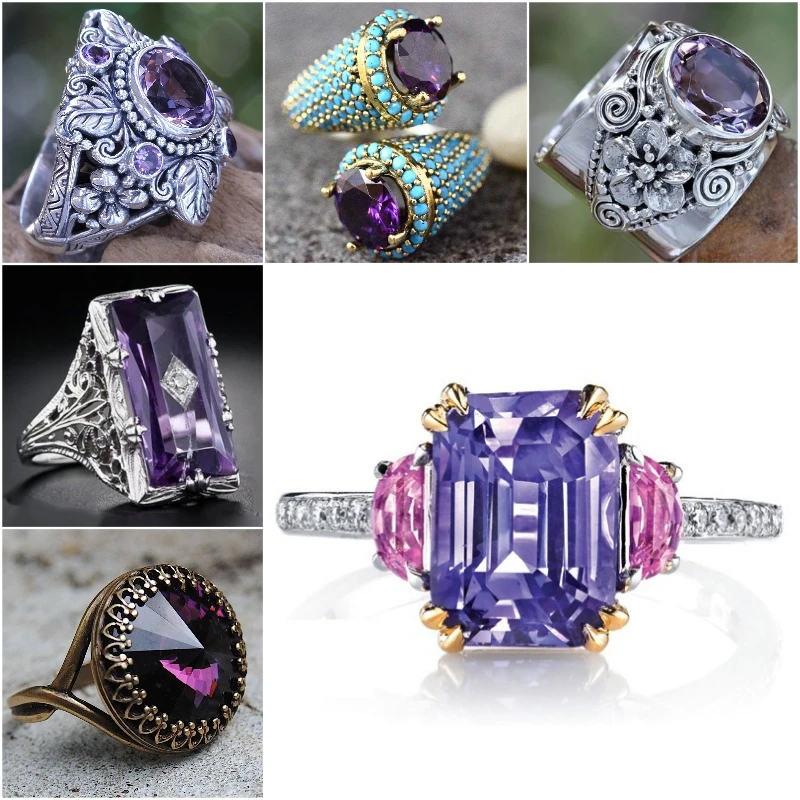 Кольцо с аметистом для мужчин и женщин, винтажное серебряное кольцо в стиле унисекс, винтажный стиль, с цветком из тайского серебра