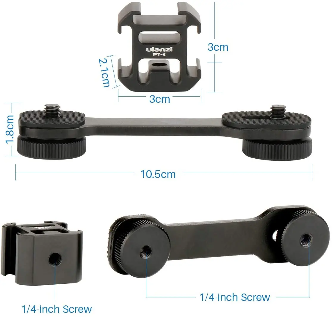 Три крепления для холодной обуви позволяют сочетать различные аксессуары, такие как светодиодный светильник, микрофон, делать то, что традиционные горячие башмаки не могут сделать!