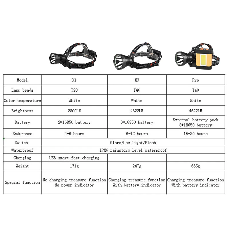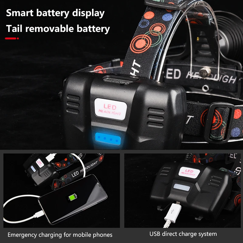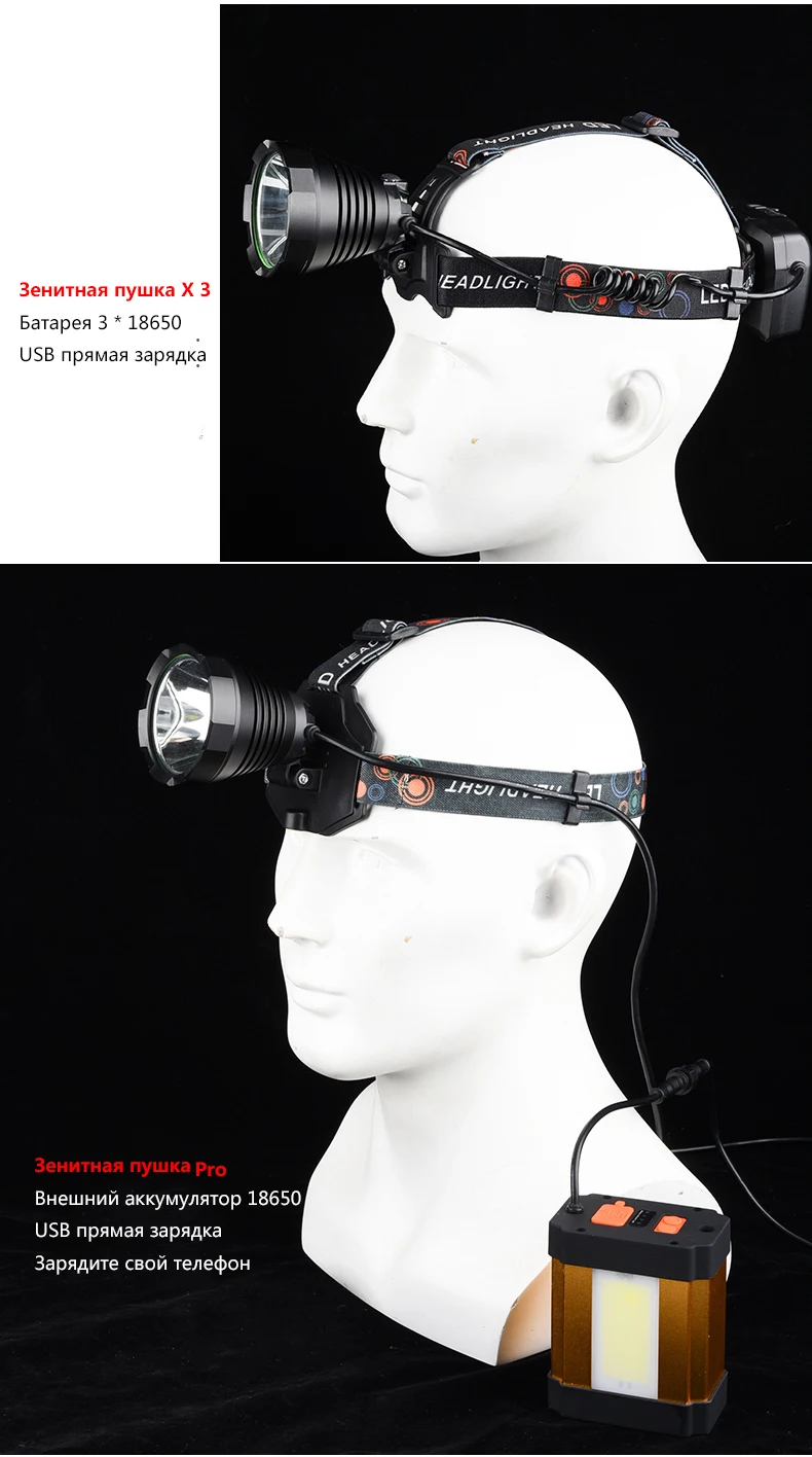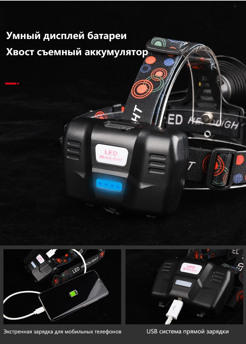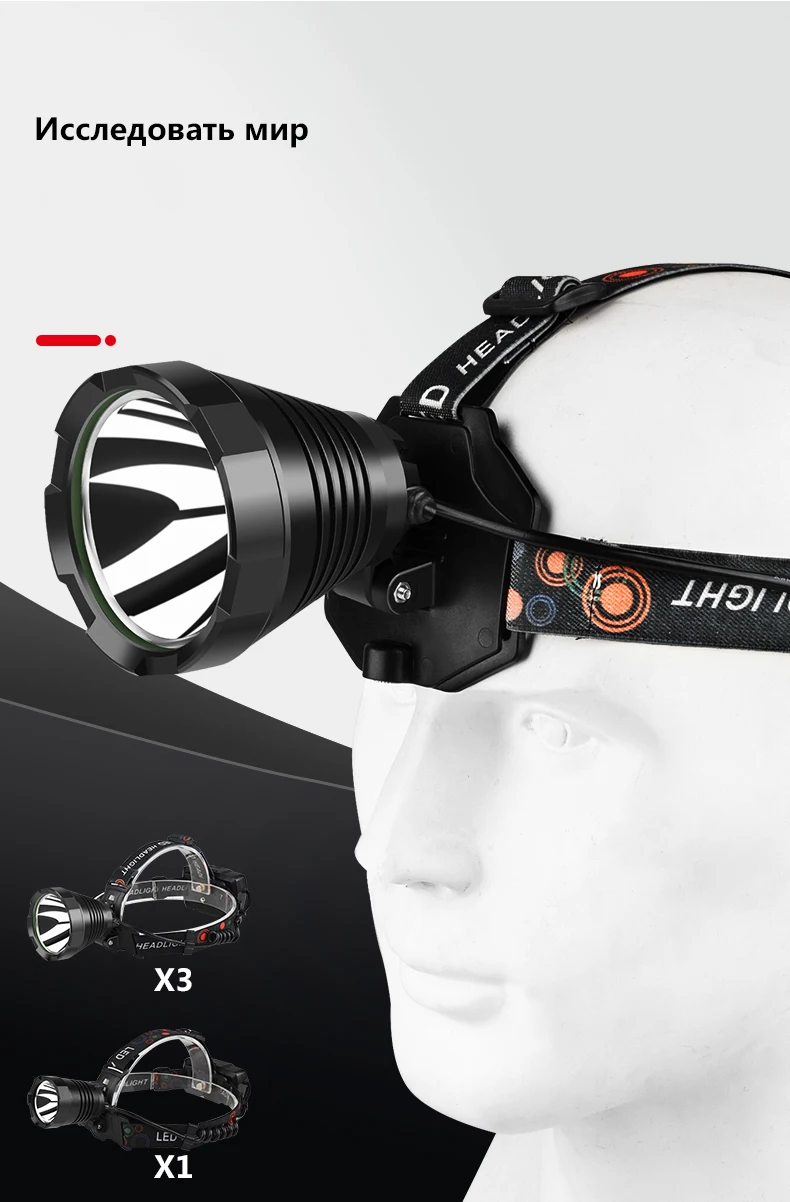 Светодиодный налобный фонарь T40 с бусинами, 4688 лм