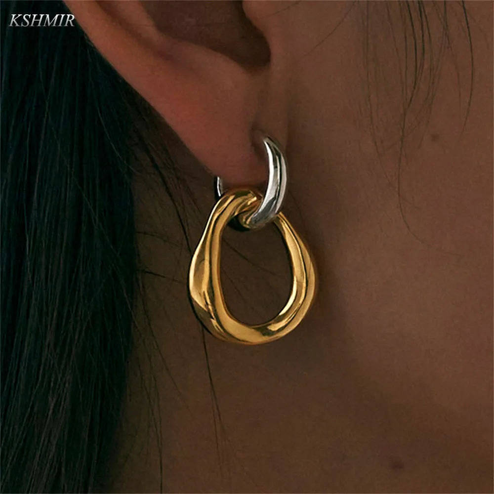 Корейские Ретро съемные серьги kshмир золотого и серебряного цвета геометрические нестандартные круглые Висячие серьги для женщин и девушек ювелирные изделия