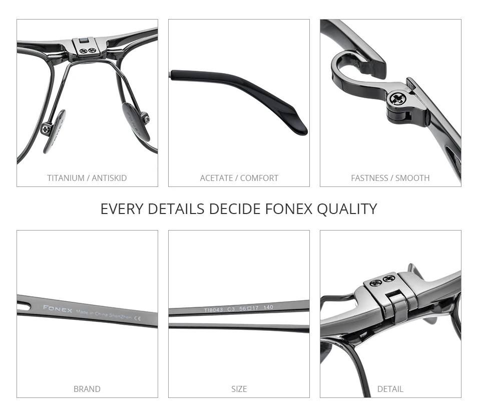 FONEX Оправа для очков Мужская квадратная из титана, 180 , F8043