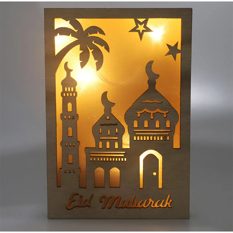 Рамадан деревянный светодиодный светильник ИД Мубарак исламский мусульманский хадж Рамадан Декор для дома Ид Аль Фитр украшение для вечерние светлые подарки
