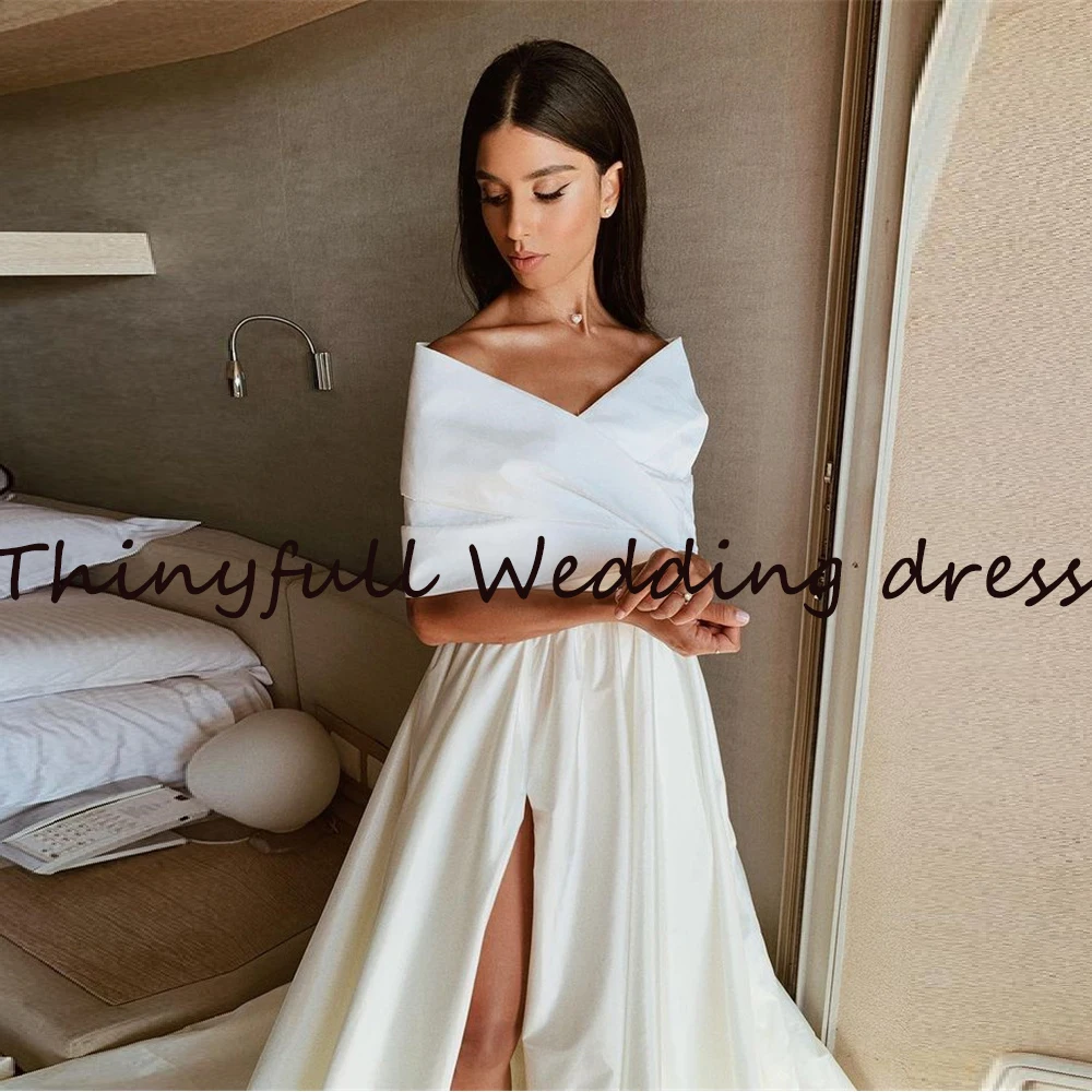Thinyfull 2022 современные трапециевидные пляжные свадебные платья с высоким Боковым Разрезом с открытыми плечами в стиле бохо Простые Свадебные платья для невесты платье